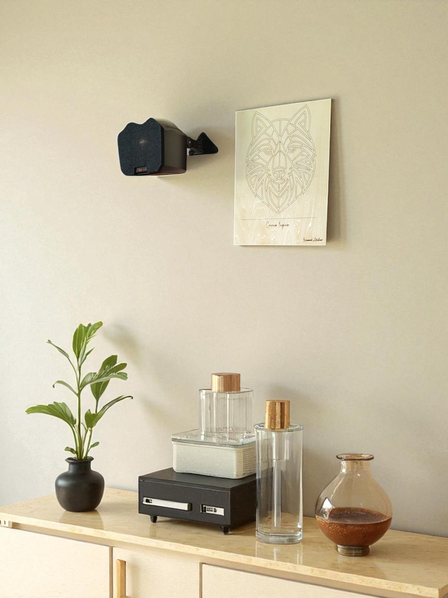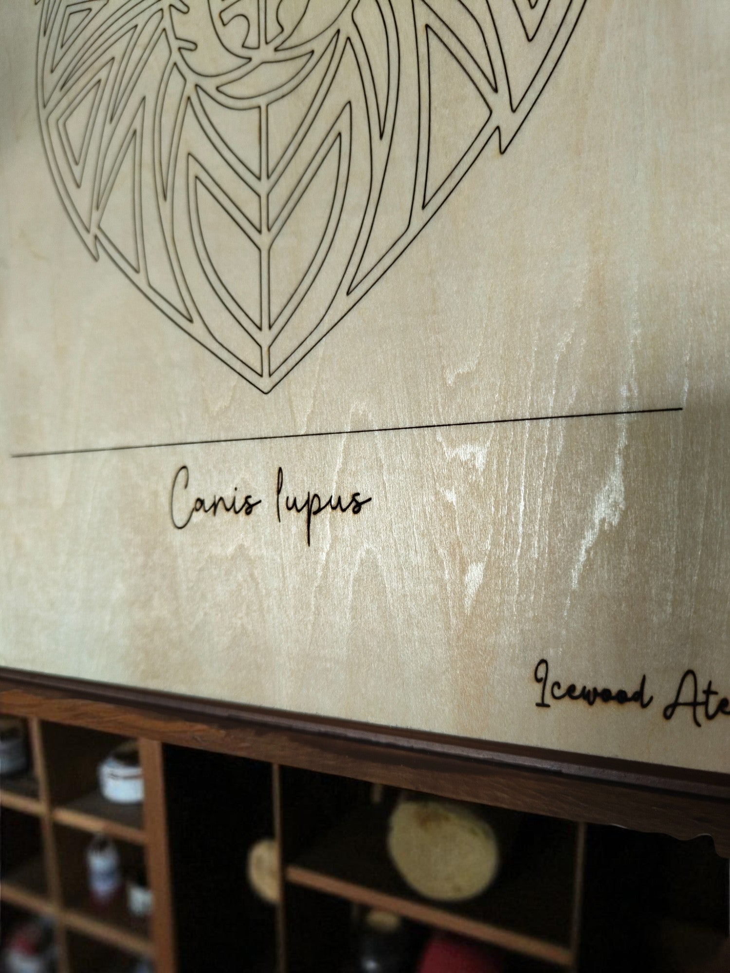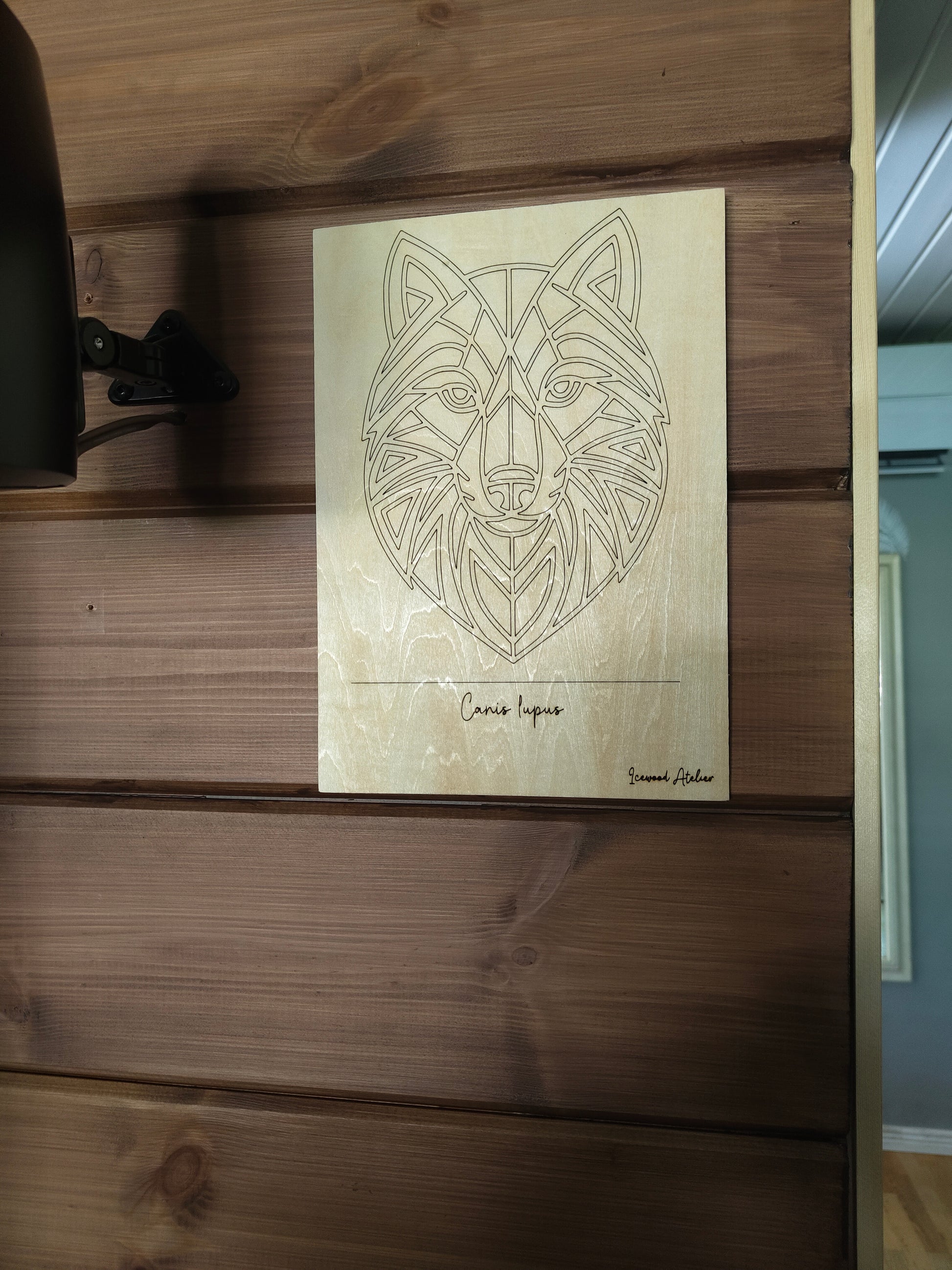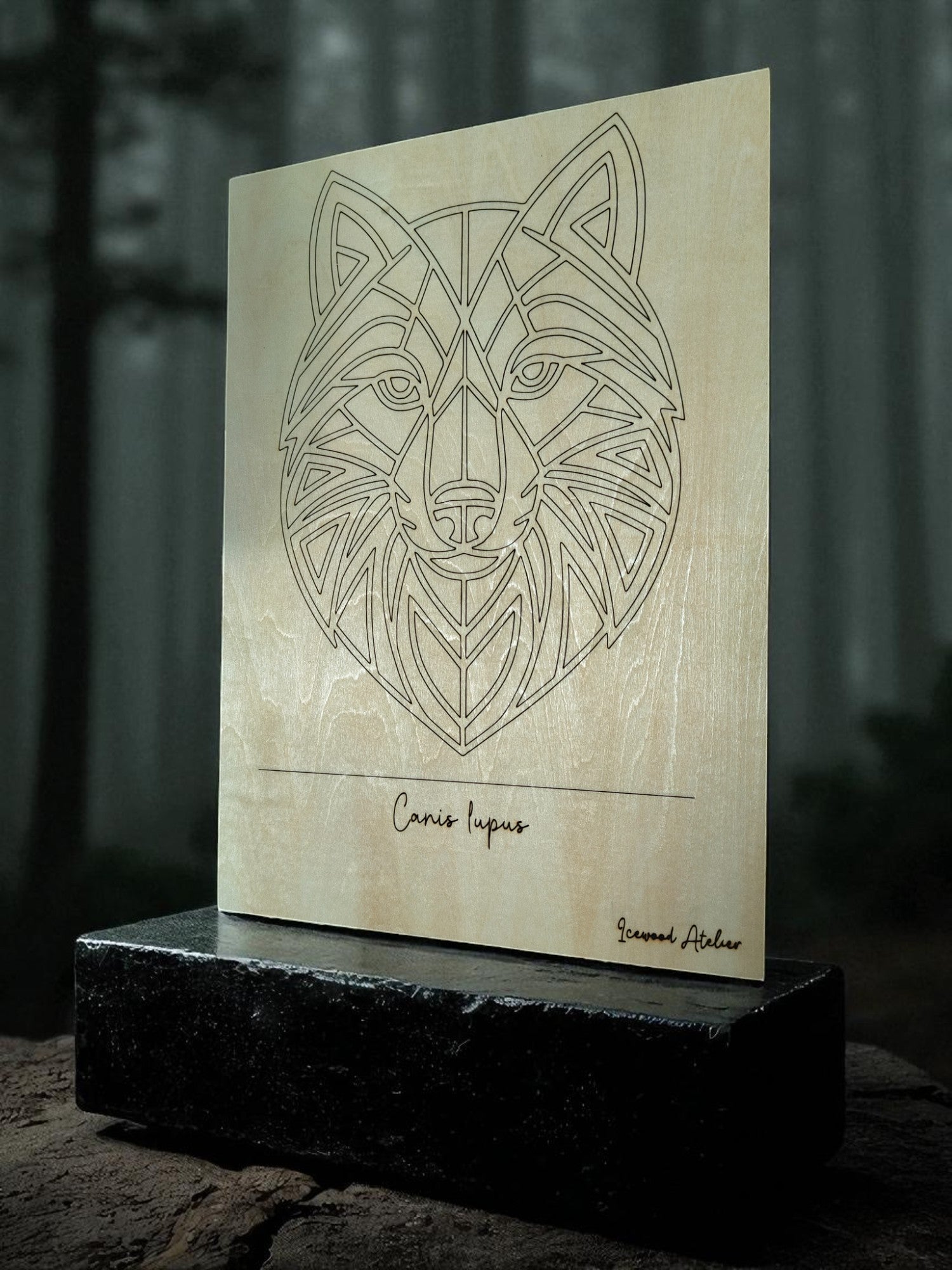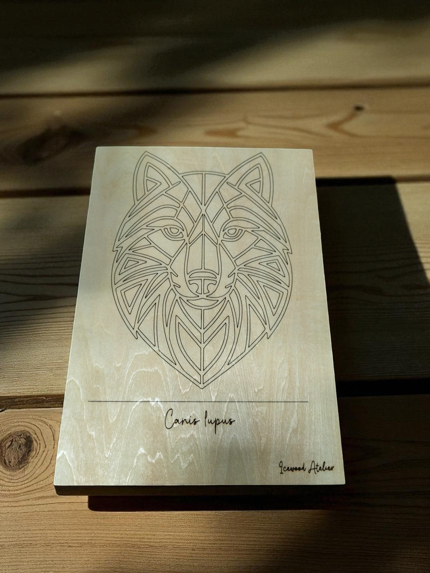 Bring the spirit of the wild into your home with this striking geometric wolf portrait, precision-engraved on 3 mm birch plywood. The clean, modern lines highlight the wolf’s intelligence and strength, while the natural grain of the birch adds warmth and character. A light protective lacquer enhances the wood’s beauty and ensures the artwork remains vibrant for years to come.
