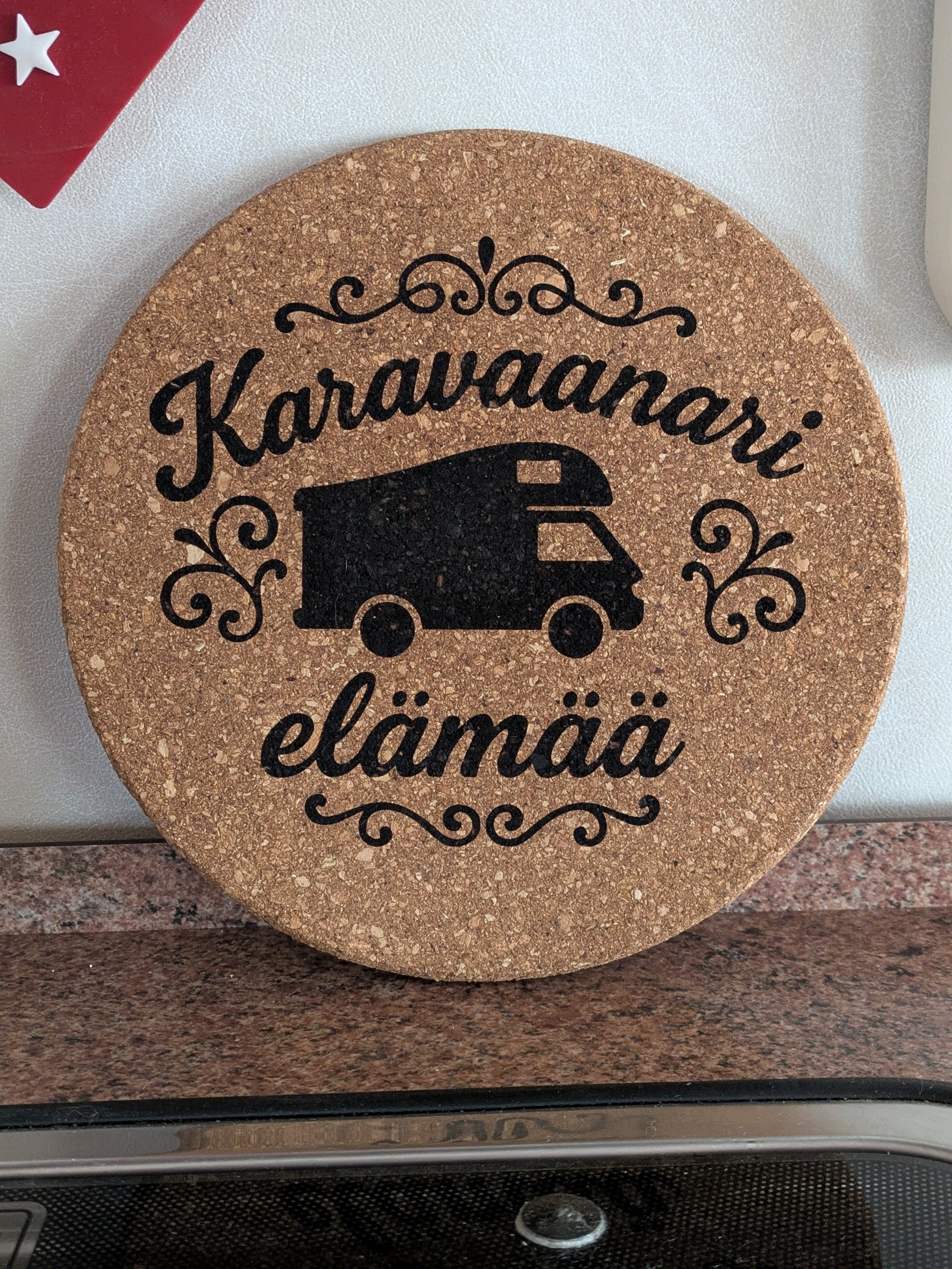 Karavaanari elämää – laserkaiverrettu korkkipannunalunen