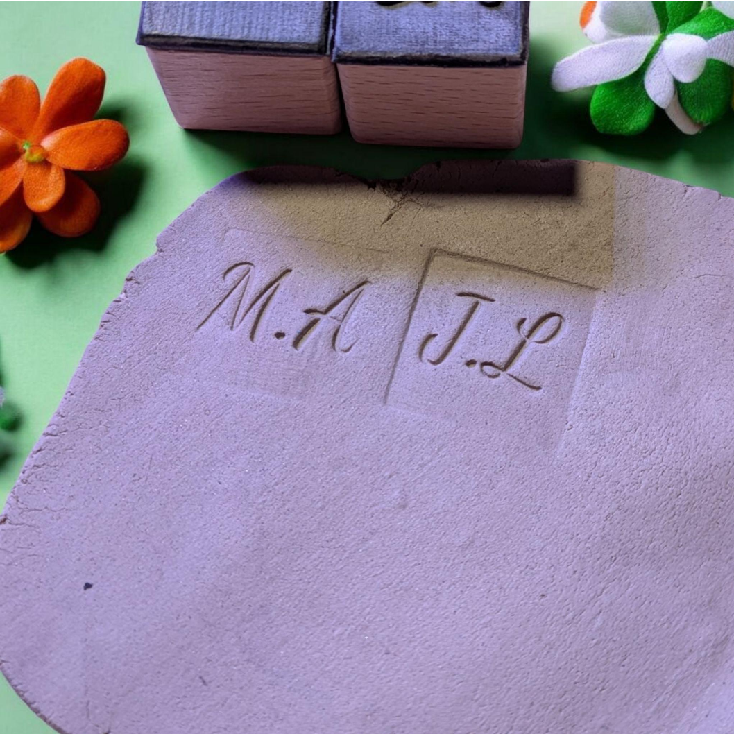 Create your own personalized stamp with initials, numbers, or short text! This laser-engraved rubber stamp makes sharp and detailed impressions in soft clay, perfect for adding custom marks to your pottery.