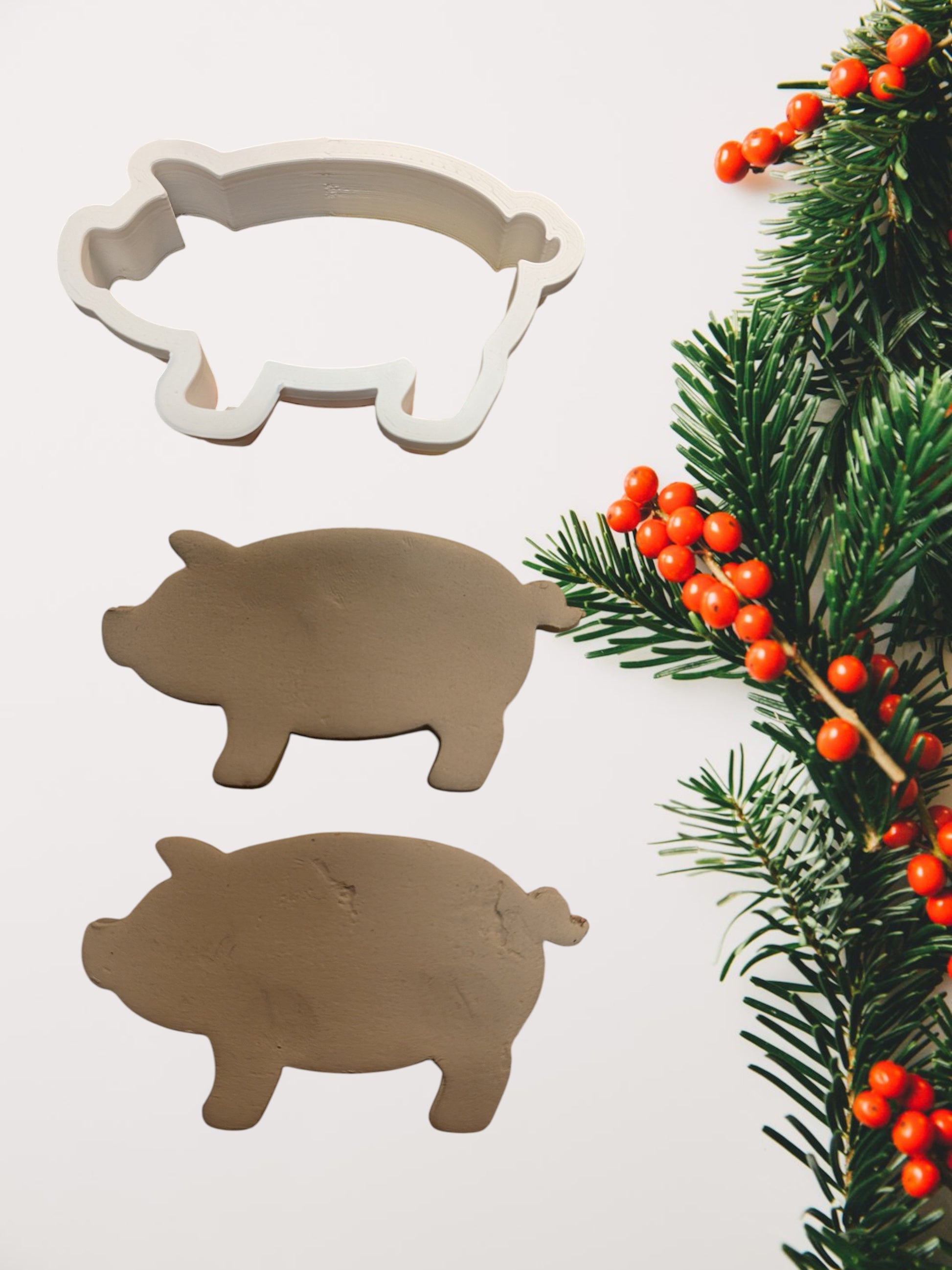 Pig-shaped cookie cutter is a classic decorative clay cutter for Christmas traditions. This is ideal for ornaments, wall pieces, tiles, tags and other seasonal ceramic and clay projects.