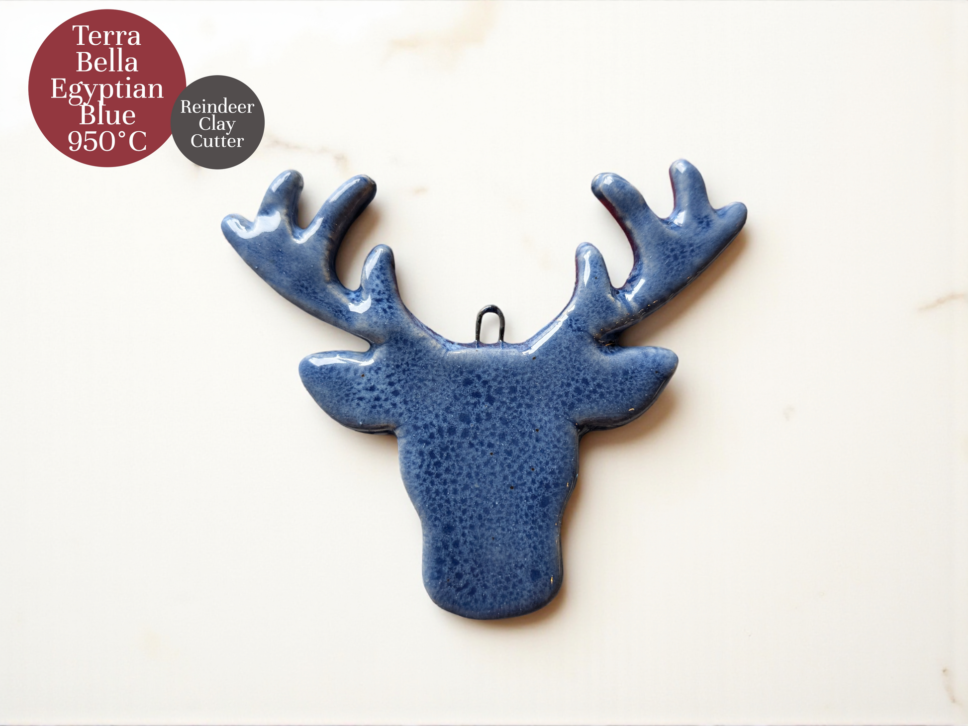 Samples were brushed with two to three coats of Egyptian Blue and fired at 950 °C with a 10-minute hold. The result was an even, slightly mottled surface with subtle gloss and a calm, layered blue tone that brings out shape and detail beautifully.