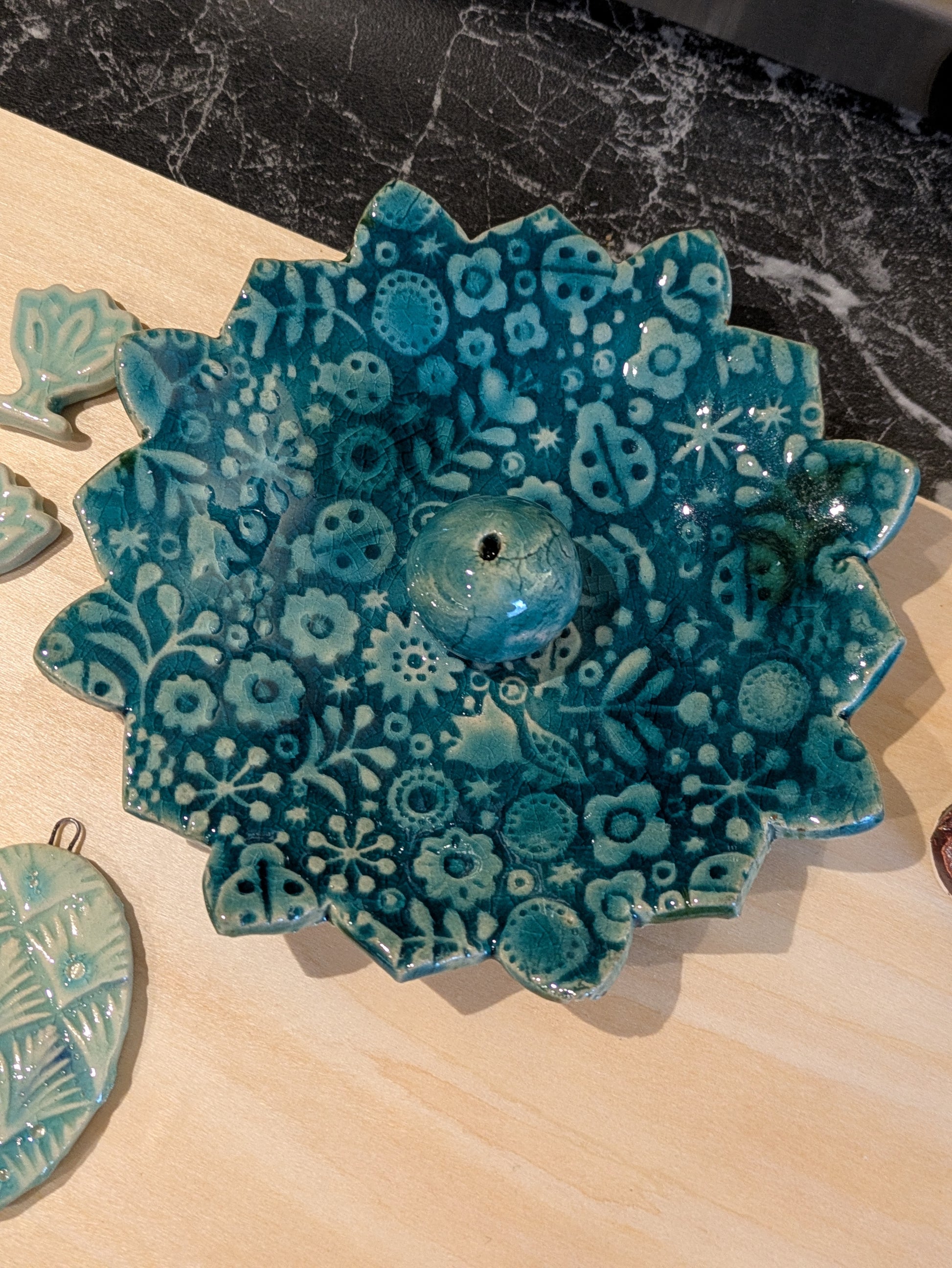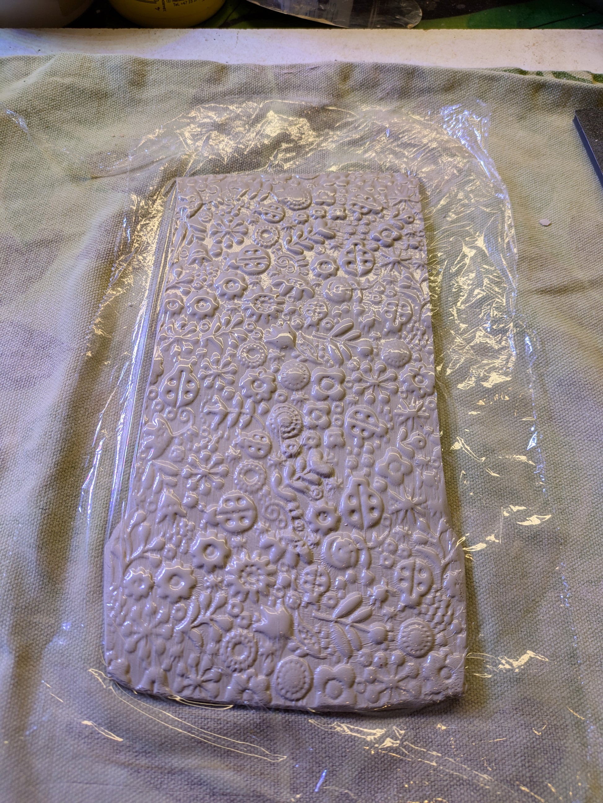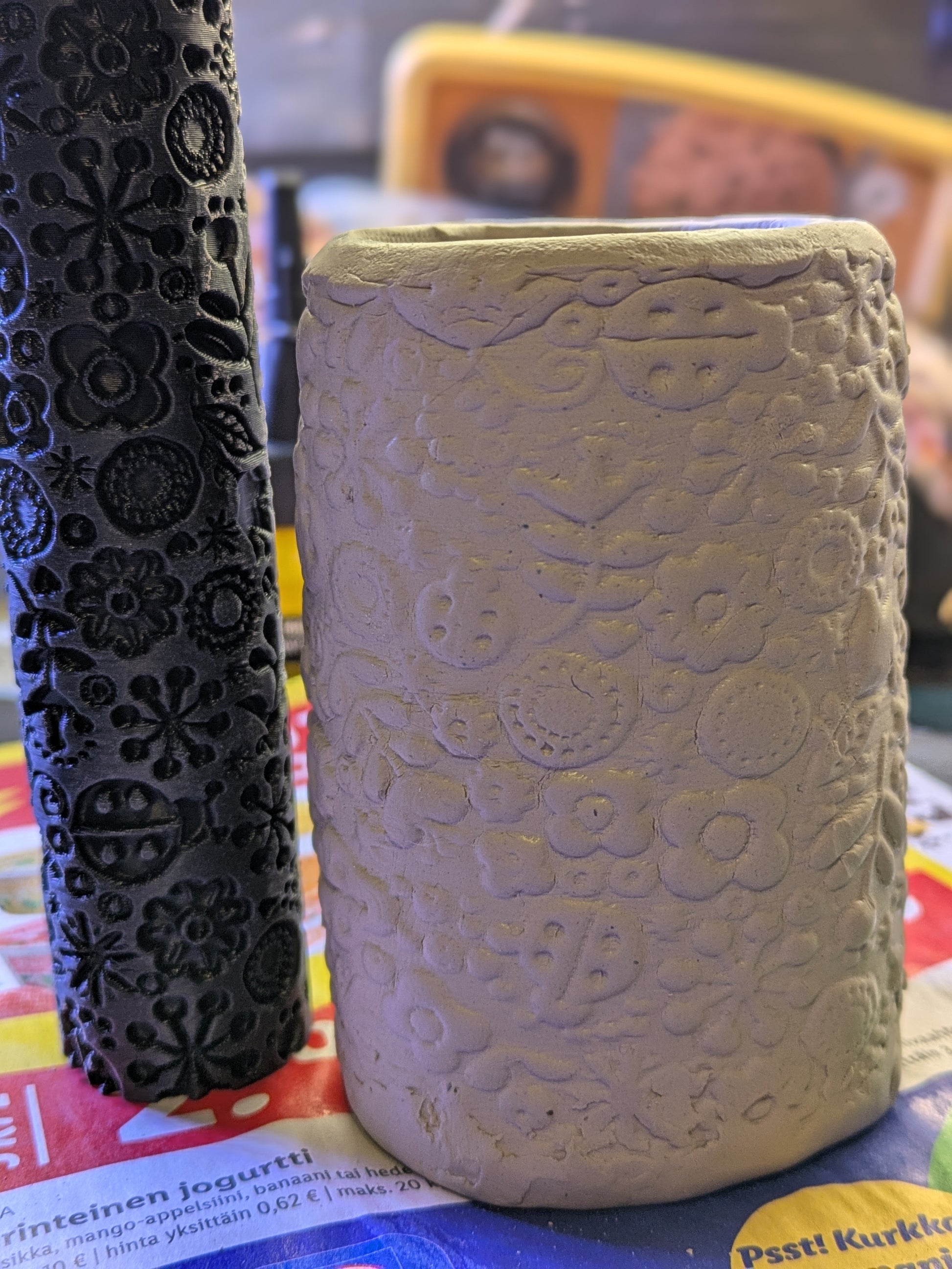 Tässä kaulimessa on kauniita kaiverrettuja kukkia, leppäkerttuja ja kesäisiä yksityiskohtia, jotka painautuvat saven pintaan selkeästi ja elävästi. Sopii täydellisesti koristeeksi keramiikkaan ja muihin savitöihin.