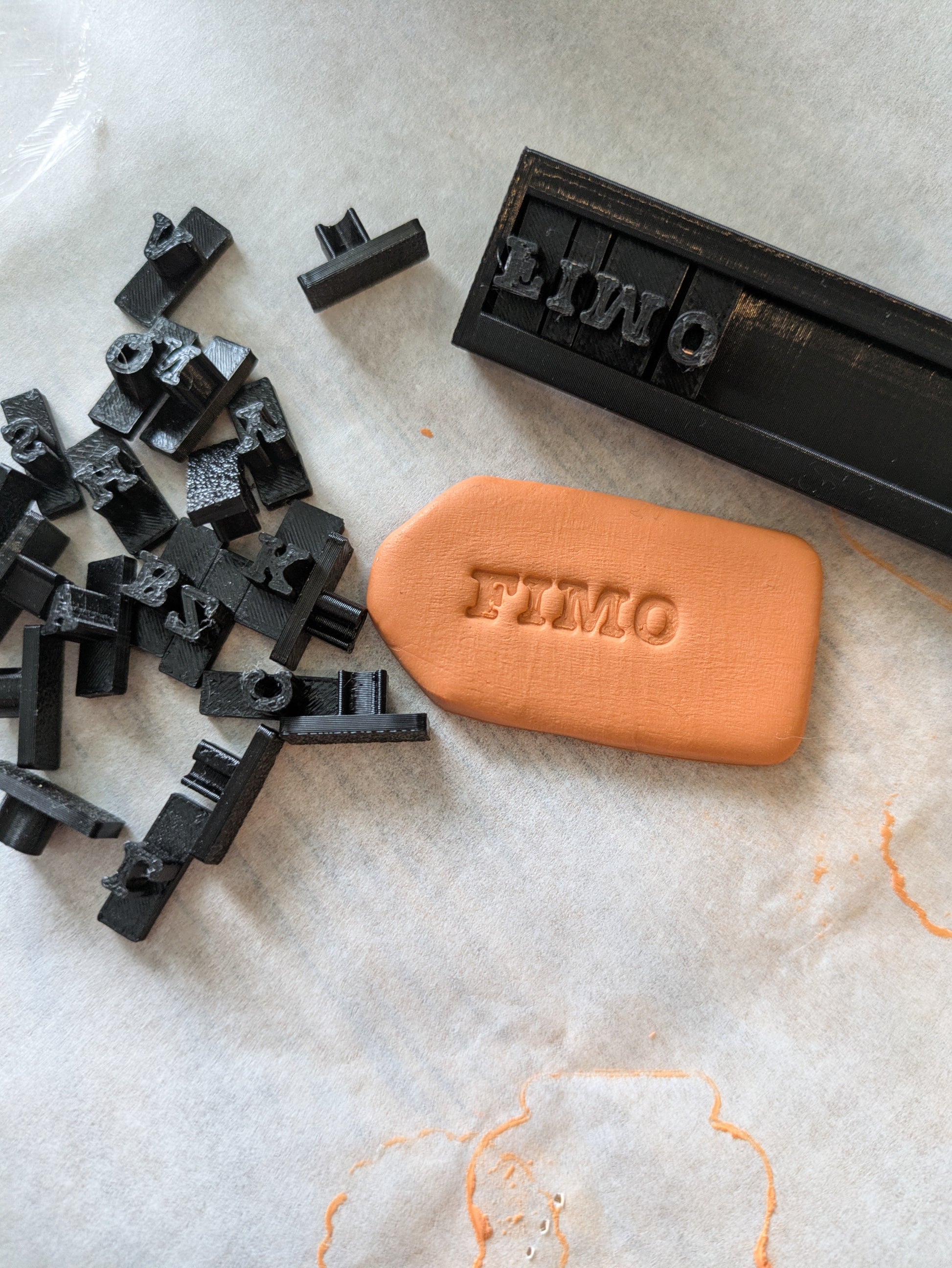 Tämä valmis 3D-tulostettu aakkosleimasinsarja on täydellinen lisä Fimo- ja muiden polymeerisavien kanssa työskentelyyn! Leimasinsarja sisältää koko aakkoston (A–Z) sekä kätevän kirjainpidikkeen, jolla voit painaa haluamiasi sanoja ja viestejä esimerkiksi koruihin, koristeisiin ja pieniin tauluihin.