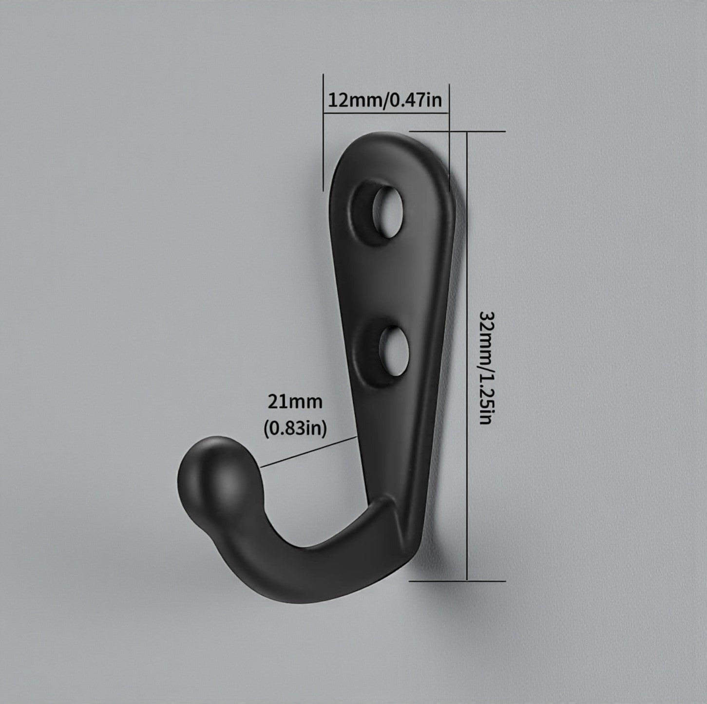 Nämä pienet mutta kestävät mustat ripustimet sopivat hyvin avaimille, koruille, pienille tarvikkeille ja kevyille koristeille. Metallinen rakenne tekee koukuista tukevia, ja perinteinen muotoilu toimii sekä modernissa että perinteisessä sisustuksessa.