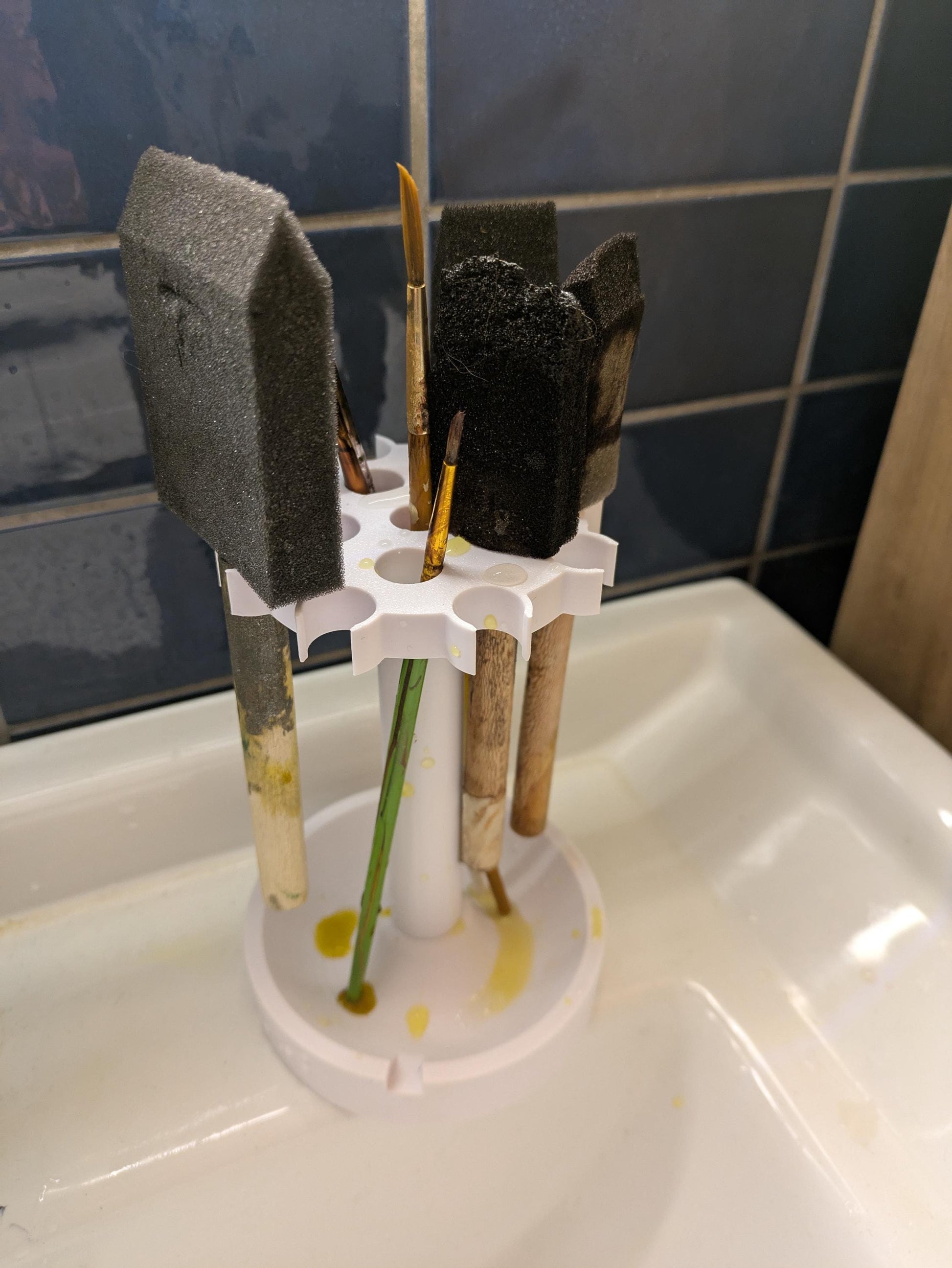 Pidä siveltimesi järjestyksessä ja kuivana helposti! Esittelyssä Brush & Foam Drying Stand, 3D-tulostettu siveltimen pidike, joka on suunniteltu pitämään maalaus- ja askartelutyökalusi täydellisessä kunnossa. Olitpa taiteilija, mallimaalari tai tee-se-itse-harrastaja, tämä kuivausteline tekee siveltimen puhdistamisesta ja kuivaamisesta vaivatonta.