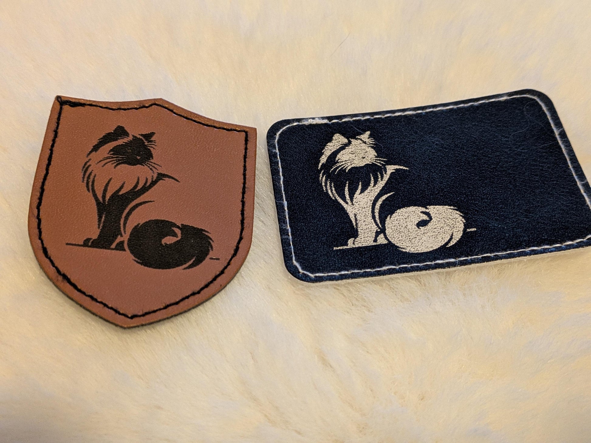 Koot: 📏 Suorakaide: Leveys 7,62 cm | Korkeus 5,08 cm 📏 Suoja: Leveys 6,5 cm | Korkeus 5 cm 📏 Pyöreä: Halkaisija 6,5 cm Väriesimerkkejä kuvissa: Pyöreä: Tummanruskea Kilpi: Vaaleanruskea Suorakulmio: Musta Tee vaatteistasi ja asusteistasi todella persoonallisia tällä kauniilla kissakaiverretulla silitettävällä nahkapaikalla!