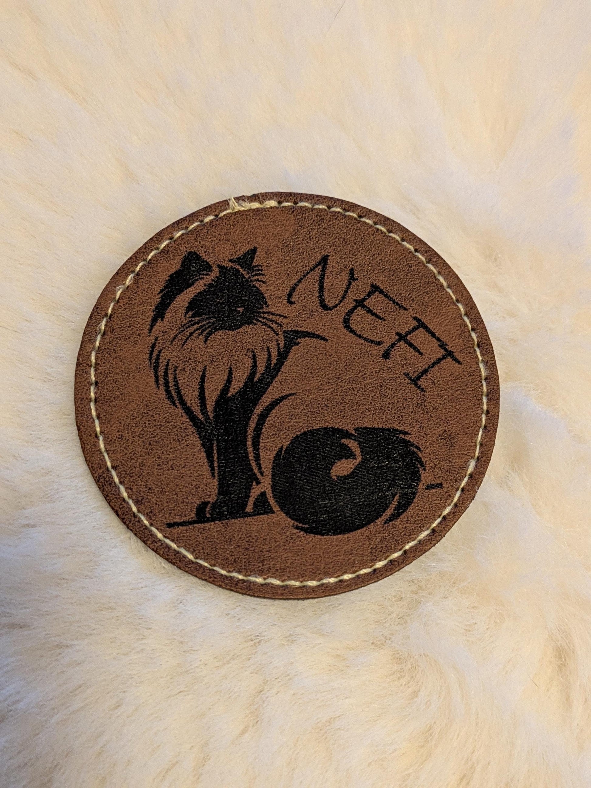 Etsitkö ainutlaatuista ja kauniisti kaiverrettua paikkaa vaatteillesi tai asusteillesi? Tämä kissateemainen silitettävä keinonahkamerkki on täydellinen lisä vaatekaappiisi, laukkuisi tai tee-se-itse-projekteihisi. Nyt saatavilla muokattavalla tekstillä!
