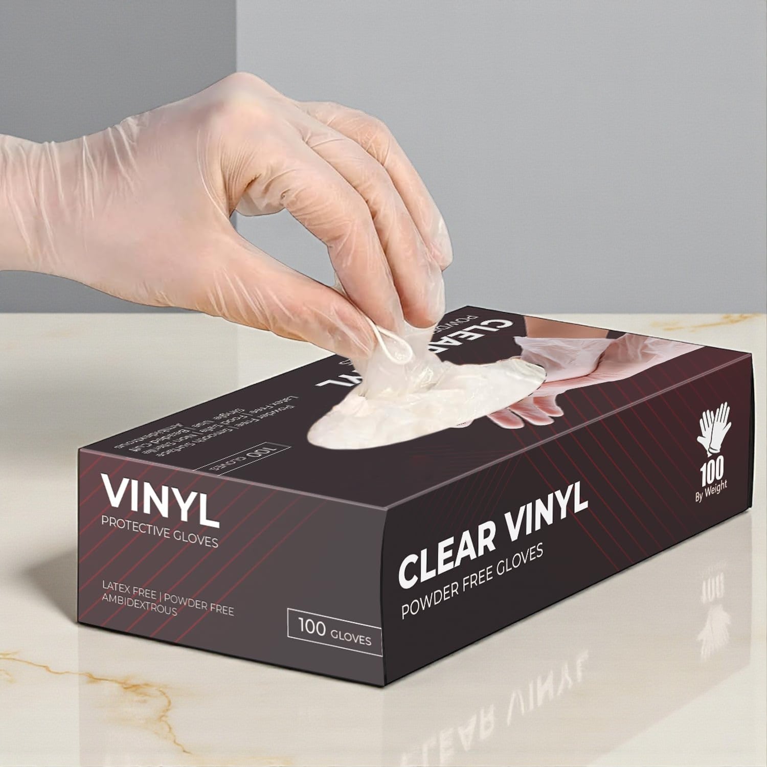 Kertakäyttöiset vinyylihanskat – puuterittomat ja lateksittomat (100 kpl / laatikko)