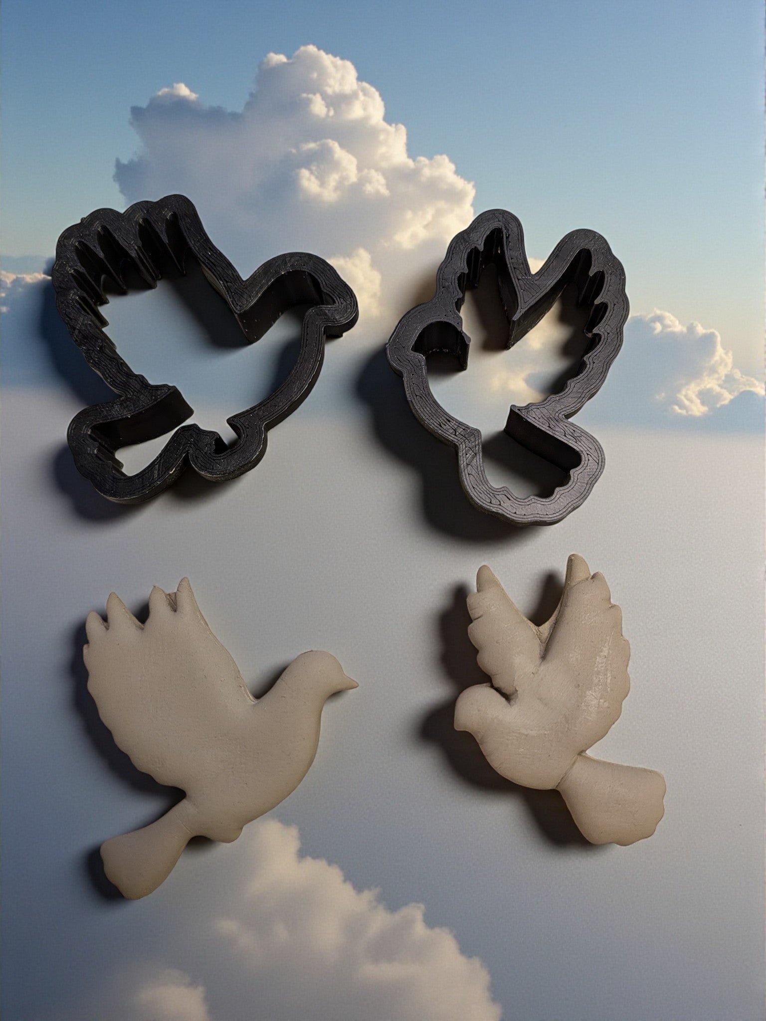 Kyyhkynen-leikkurisarja sisältää kaksi erilaista kyyhkymuotoa, joista kumpikin on saatavana neljässä eri koossa. Leikkurit on suunniteltu erityisesti savitöihin, ja ne sopivat kauniisti herkkäsävyisiin, rauhallisiin tai symbolisiin projekteihin – kuten koristeisiin, laattoihin ja ripustettaviin riipuksiin.