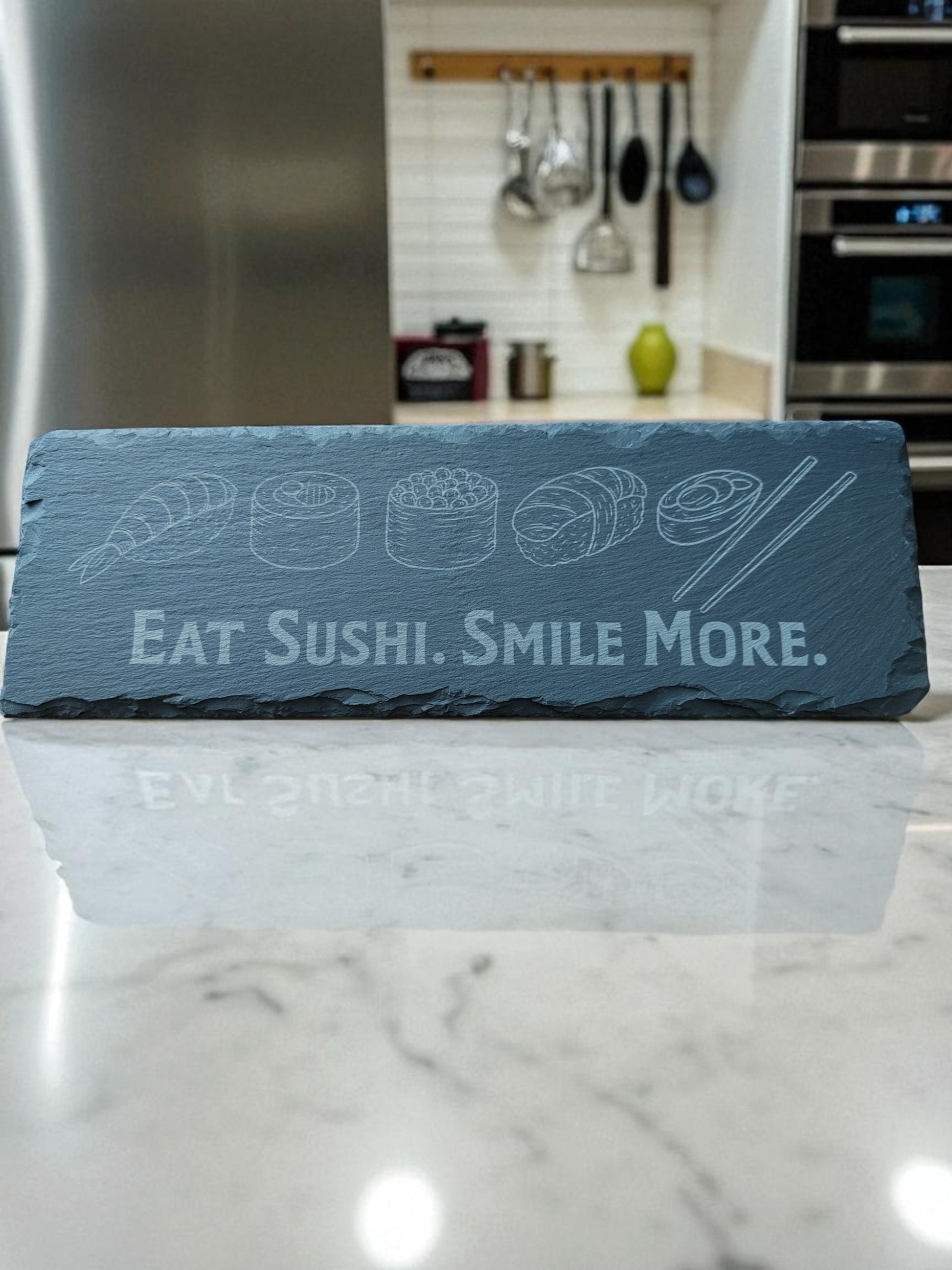 Tarjoilualusta kaiverruksella – luonnollista liuskekiveä