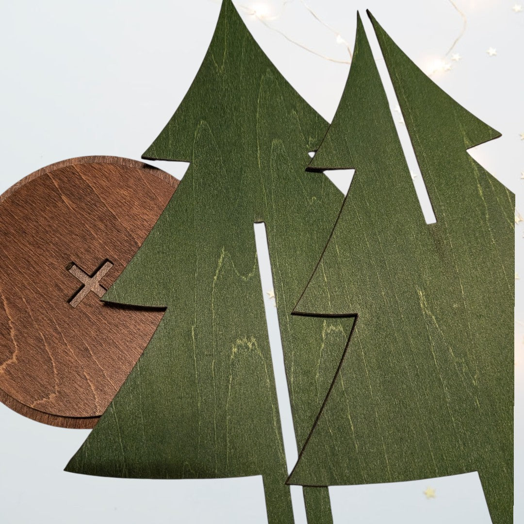 Voit valita kahdesta versiosta, yksinkertainen ilman koristeita tai koristeellinen. Koristeelliseen versioon liimataan käsityönä puiset "valot" ja joulupallot, joten yksikään kuusi ei ole samanlainen.