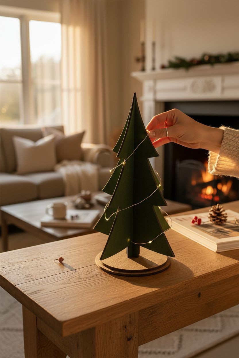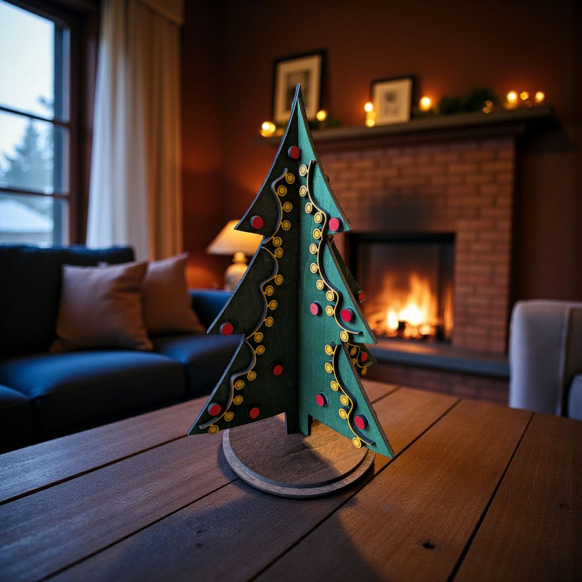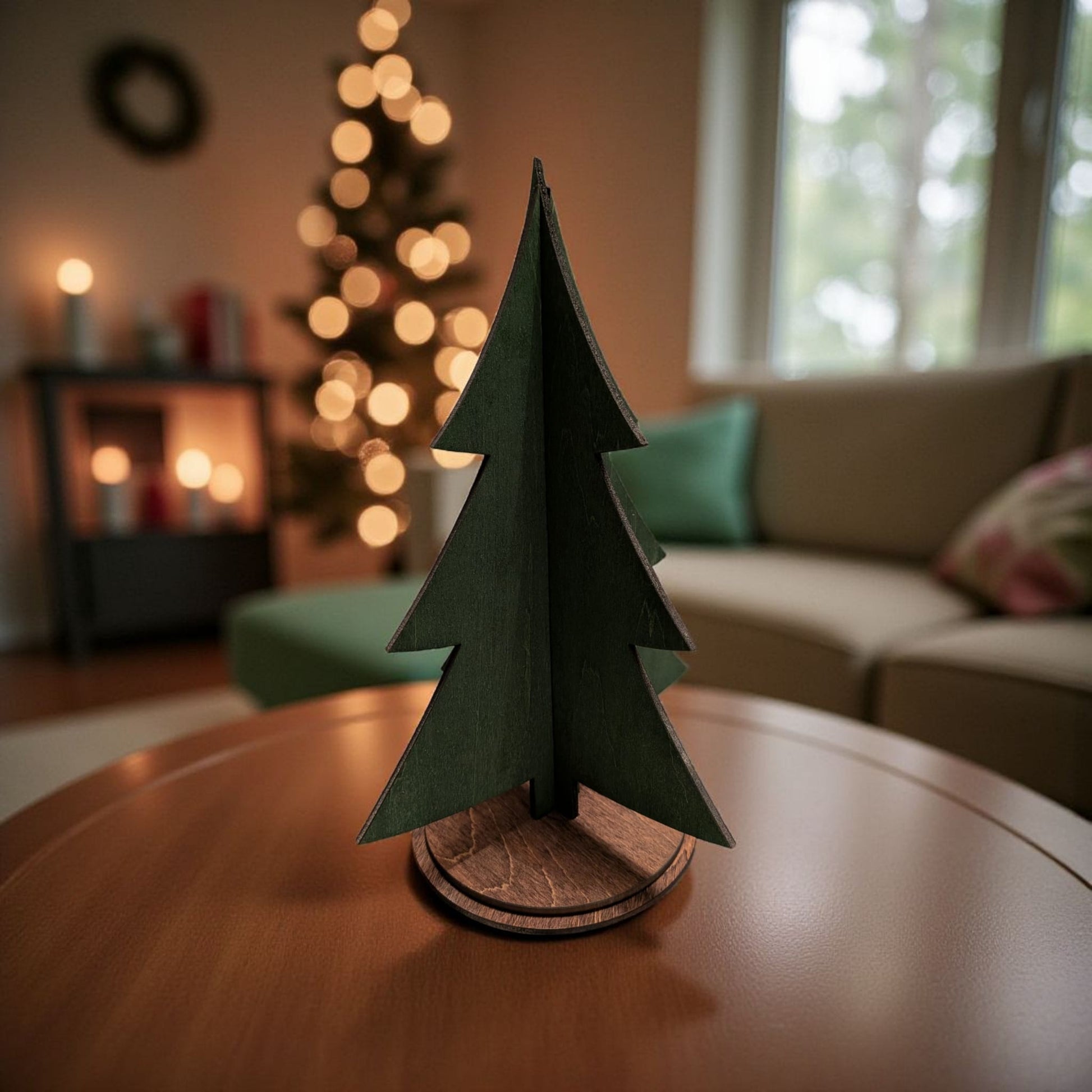 Vihreä koivuvanerista valmistettu pöytäkuusi