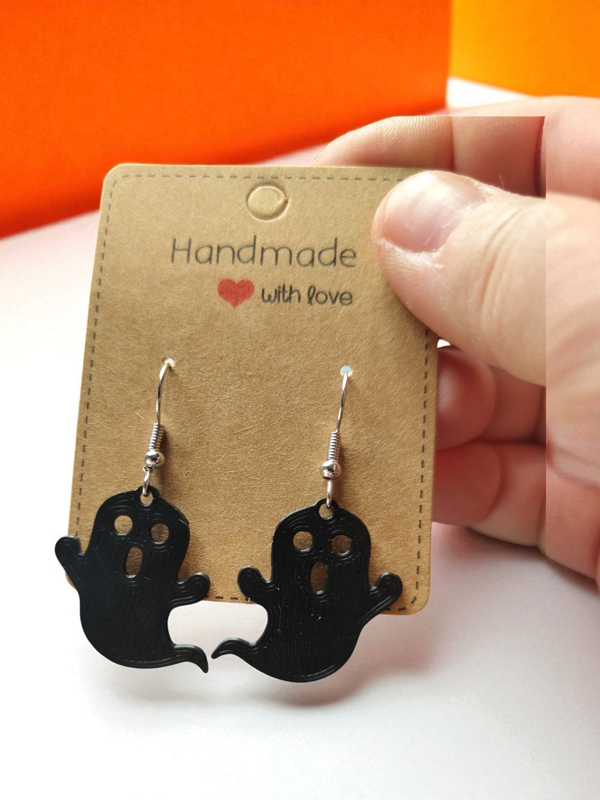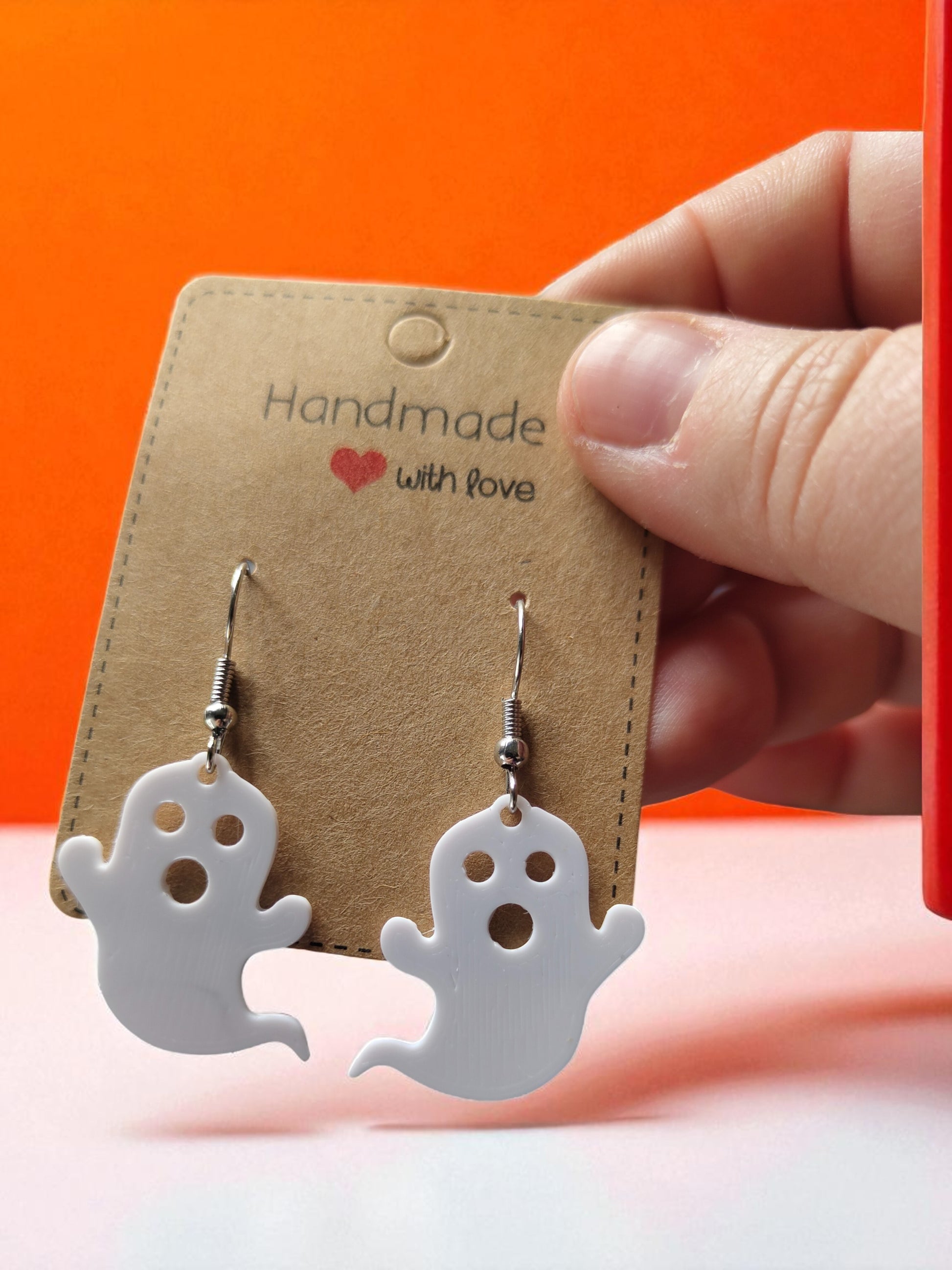 Hauskat ja kevyet kummituskorvakorut tuovat ripauksen halloween-tunnelmaa asuusi! Korut on valmistettu kestävästä PLA-biomuovista 3D-tulostamalla, ja ne ovat kooltaan noin 20,5 × 28 mm (paksuus 1,3 mm). Saatavana neljässä värissä: musta, valkoinen, oranssi ja violetti.