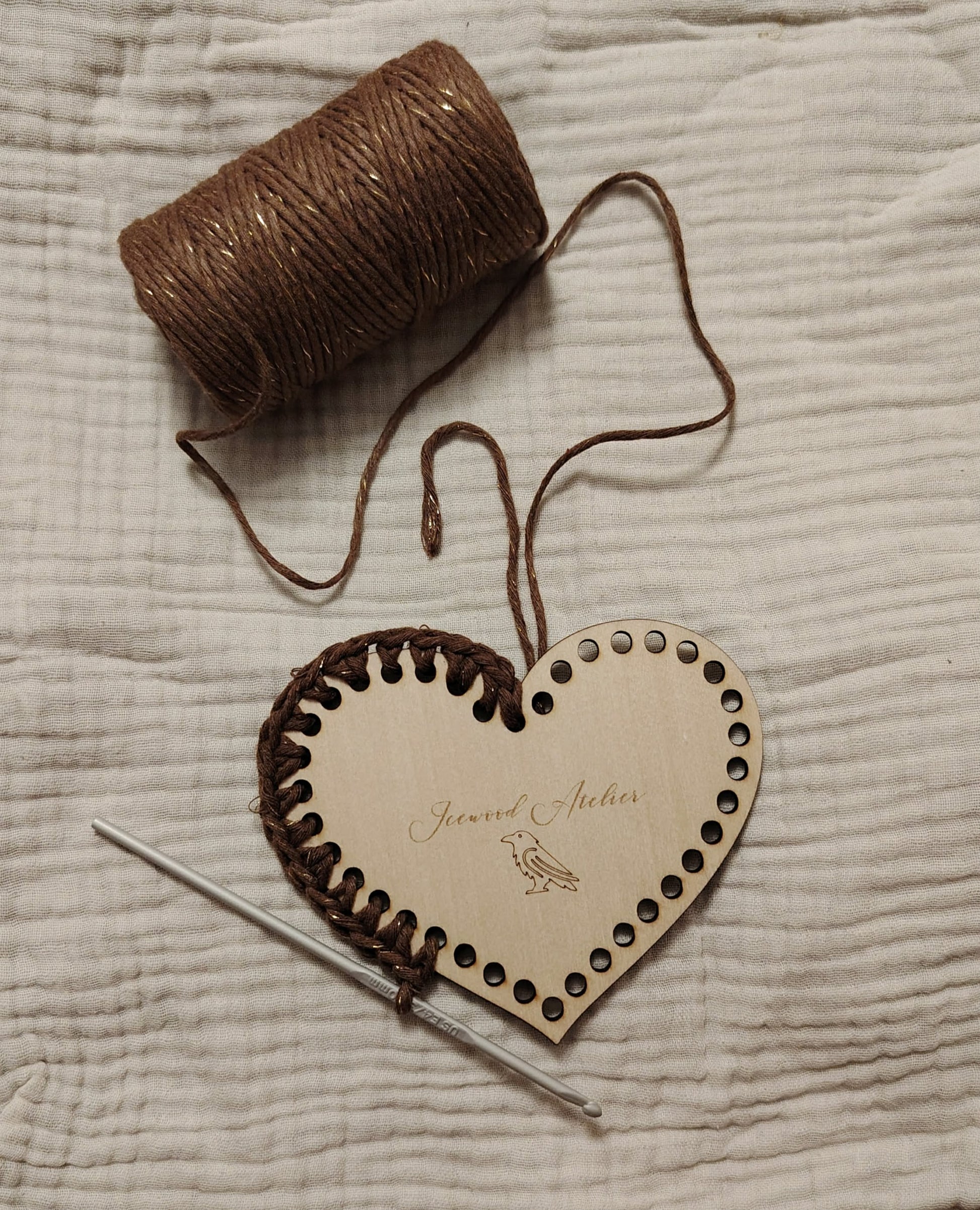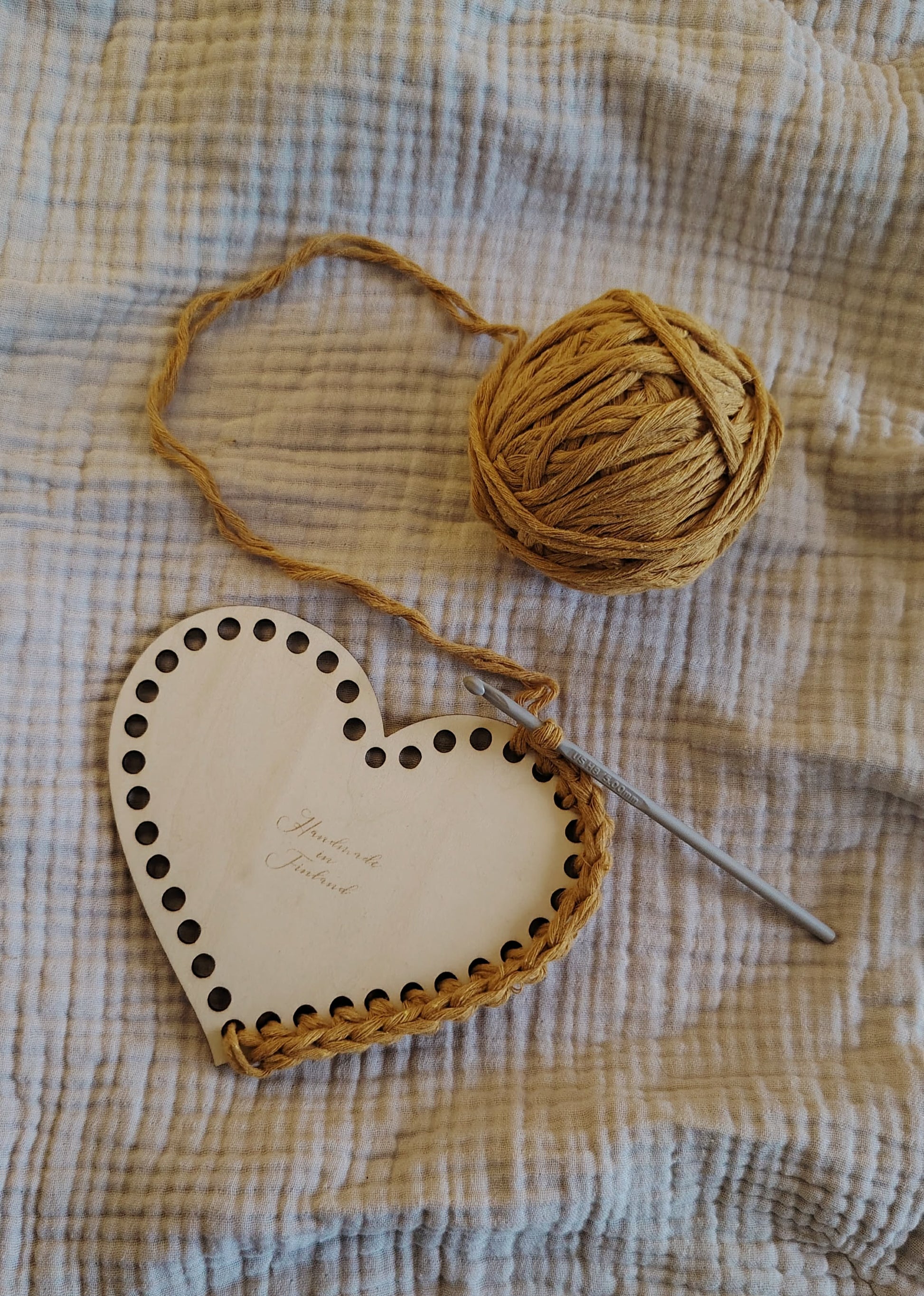 Sydämen muotoinen Virkkauspohja Suomalaisesta Koivuvanerista
