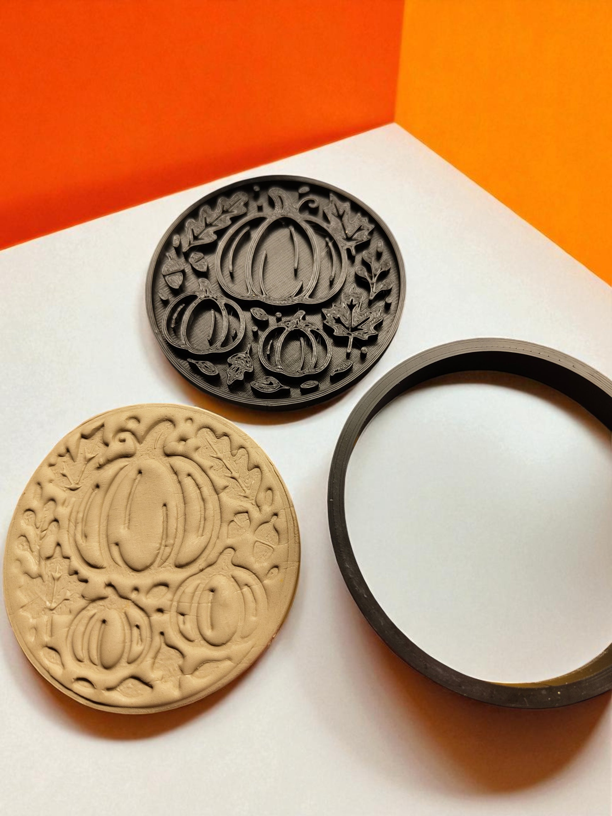 Kurpitsa pyöreä savileikkuri ja leimasin – 8,1 × 8,3 cm, Icewood Atelier.