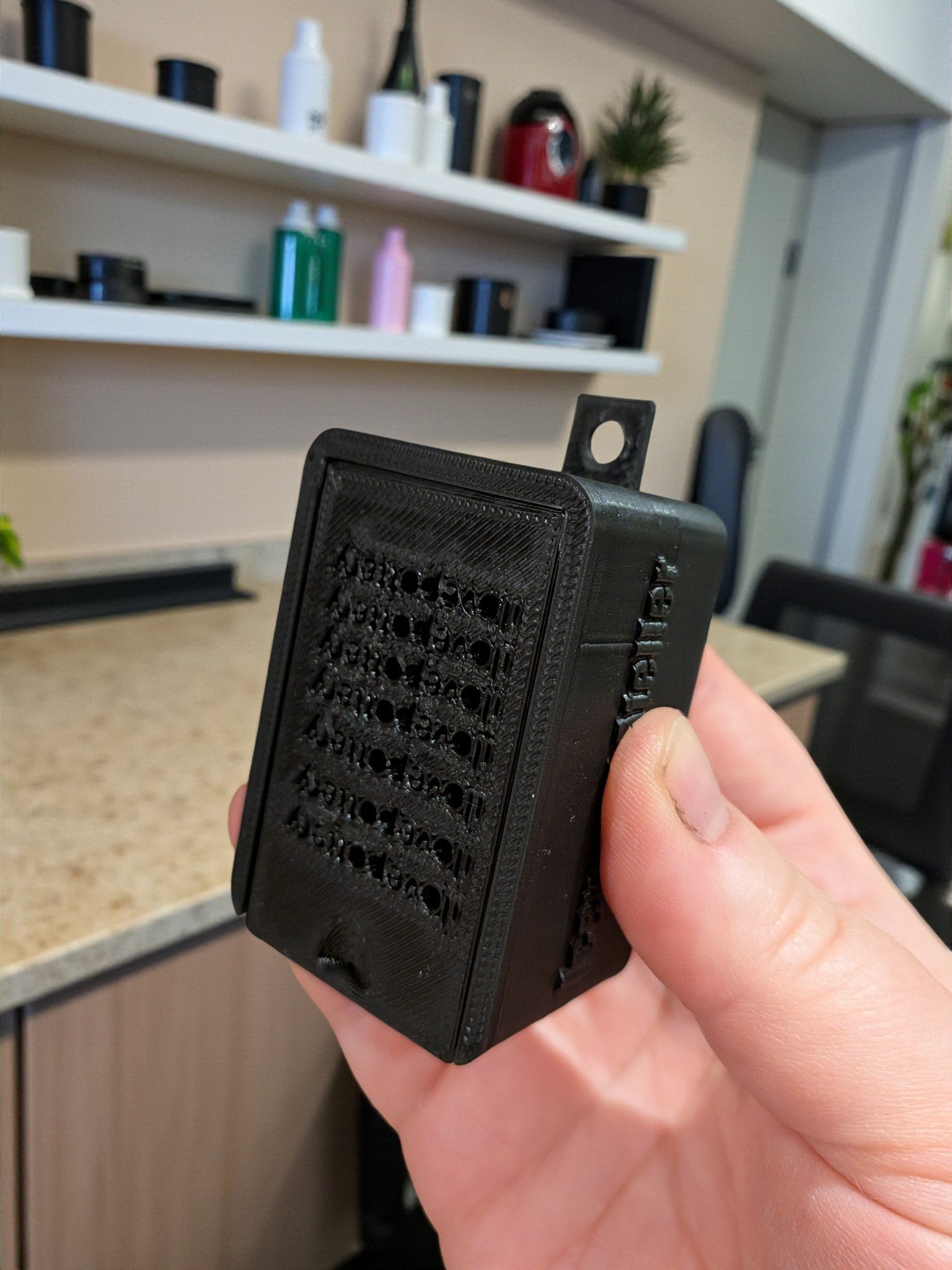 Väline on 3D-tulostettu biohajoavasta PLA-materiaalista ja se on mitoitettu mukavaan yhden käden työskentelyyn.