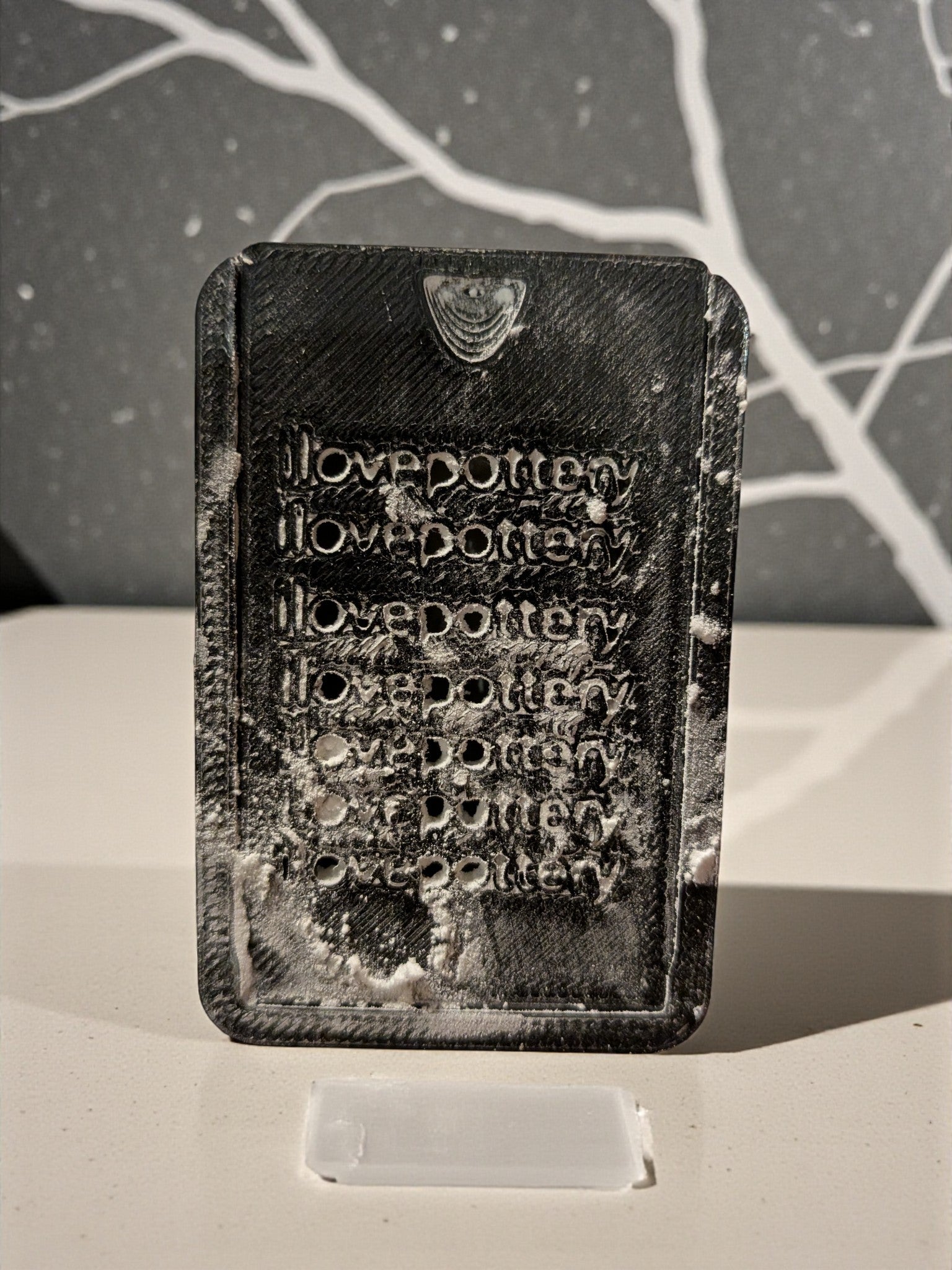 I Love Pottery Tapper Box on pieni ja kätevä väline, jonka avulla saat aseteltua maissijauhoa tasaisen kevyenä kerroksena saven pinnalle. Täytä laatikko maissijauholla, liu’uta kansi paikalleen ja taputtele tai heiluttele kevyesti—kannen “I love pottery” -kuvio muodostaa pienet reiät, joista jauhoa tulee juuri sopiva määrä työskentelyn aikana.