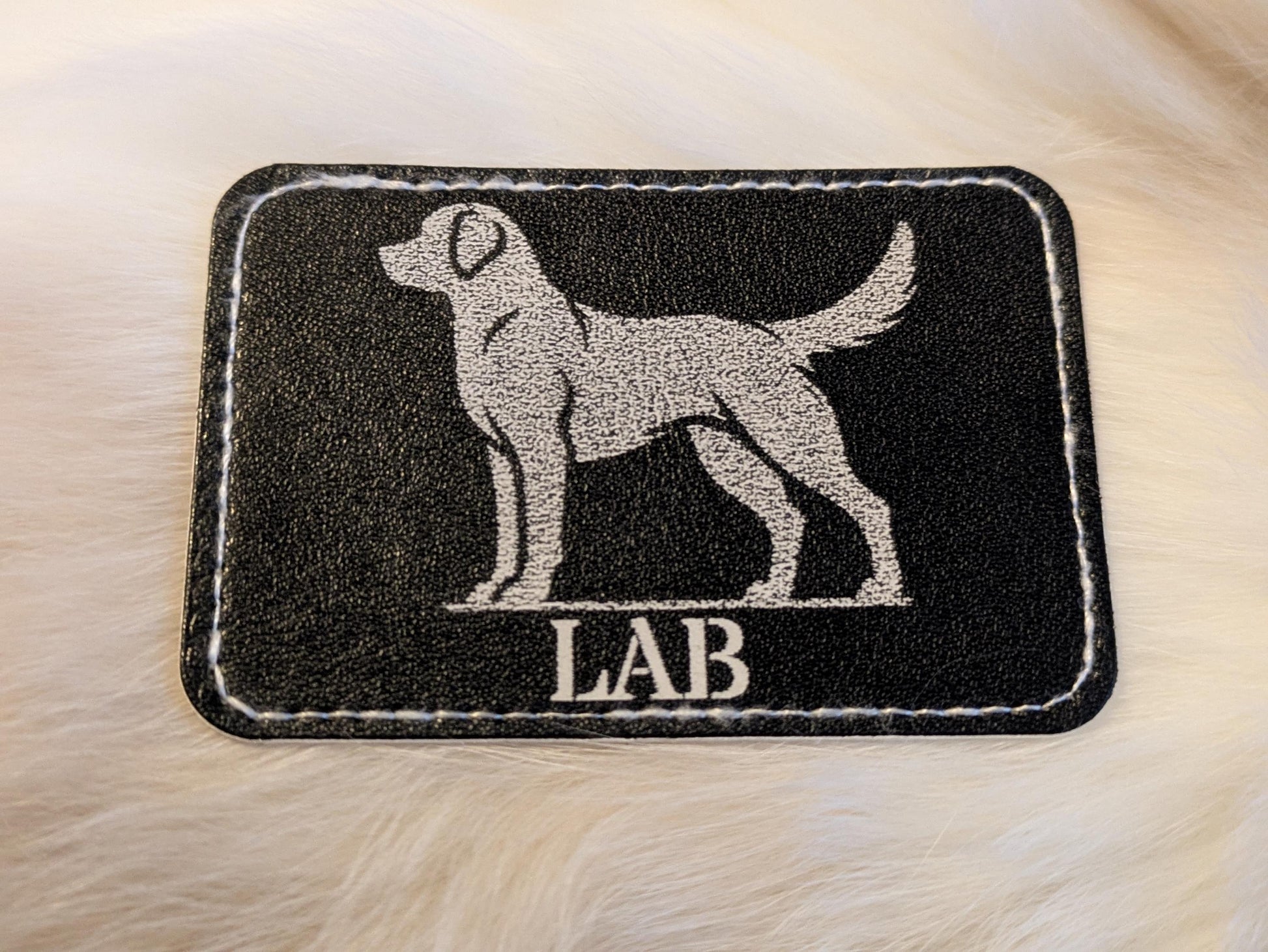 Tuotetiedot: Materiaali: Korkealaatuinen keinonahka lämpöaktivoituvalla liimalla. Suunnittelu: Laserkaiverrettu labradorinnoutaja. Mustalla paikalla laserkaiverrus on valkoinen. Käyttö: Silitettävä – helppo levittää kotitaloussilitysraudalla. Kestävyys: Sopii kangaspinnoille, kuten puuvillalle, denimille ja kankaalle.