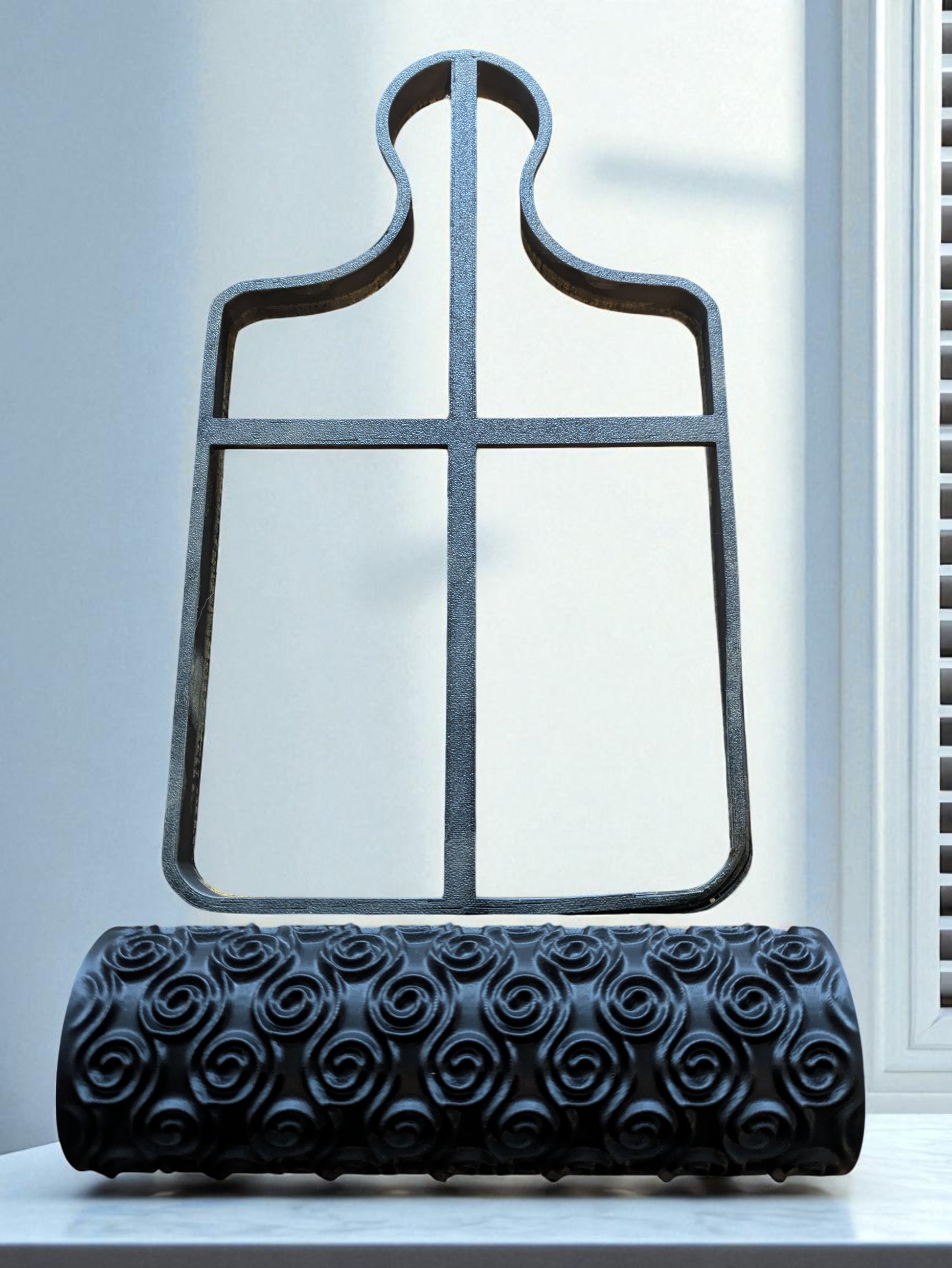Huom! Kuvassa näkyvä pieni pintakuviointi on tehty Icewood Atelierin Japani-sarjan kaulimella (kuvassa käytetty malli: Japani 2, 10cm): Japani-sarjan kaulimet – keramiikkapintojen kuviounelma – Icewood Atelier – 10 cm ja 15 cm kaulimet tuottavat hieman eri kokoisen kuvion – 15 cm kaulimella saat kuvioinnin yhdellä rullauksella ilman näkyviä siirtymäviivoja Kaikki 15 cm kaulimet sopivat täydellisesti tämän leikkurin kanssa jos ei halua että pinnassa näkyy ylimääräisiä viivoja kaulimen paikan vaihtamisesta.