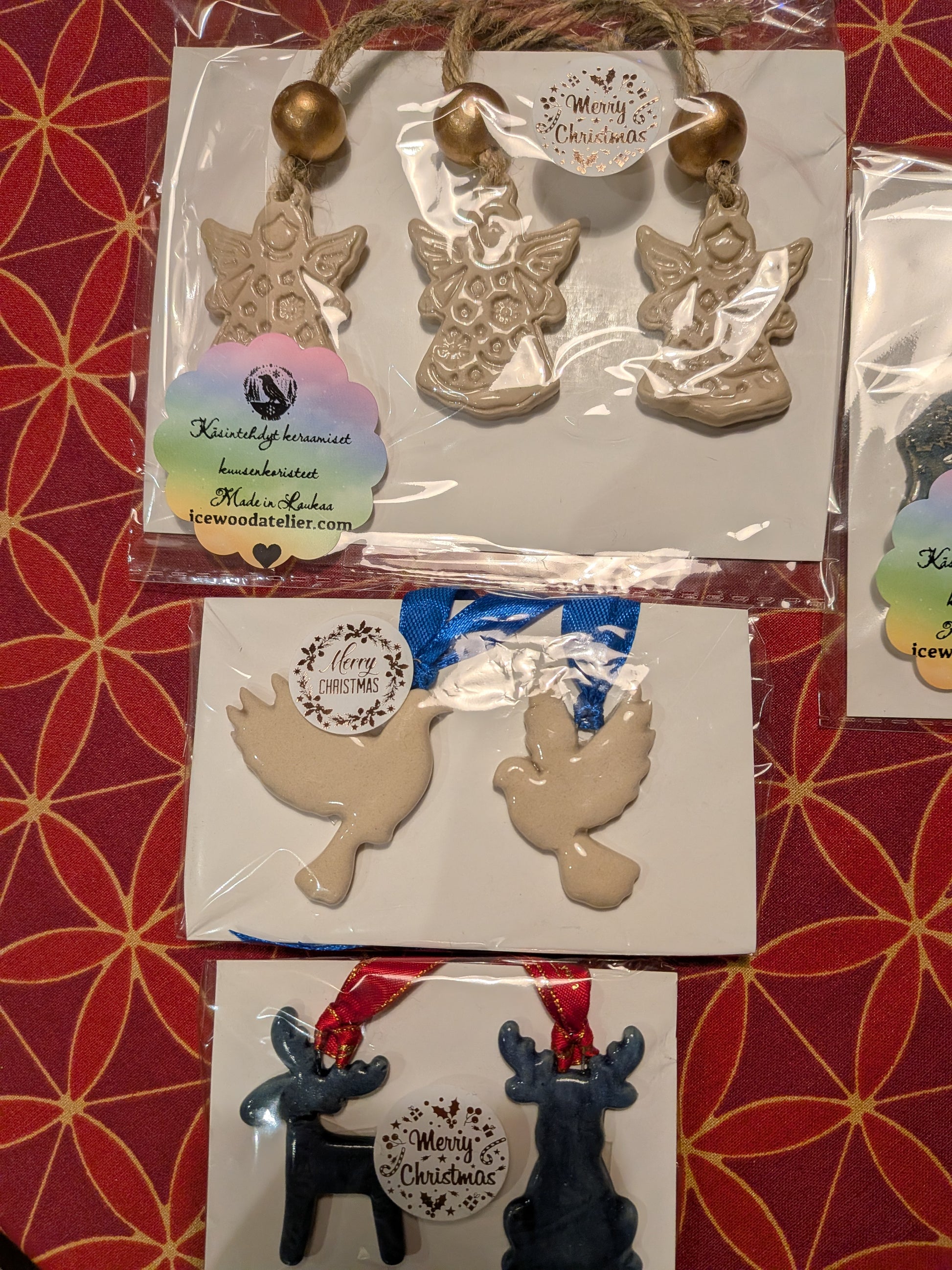 - Valkoiset enkelit, 3 kpl – 9 € (n. 5 cm)