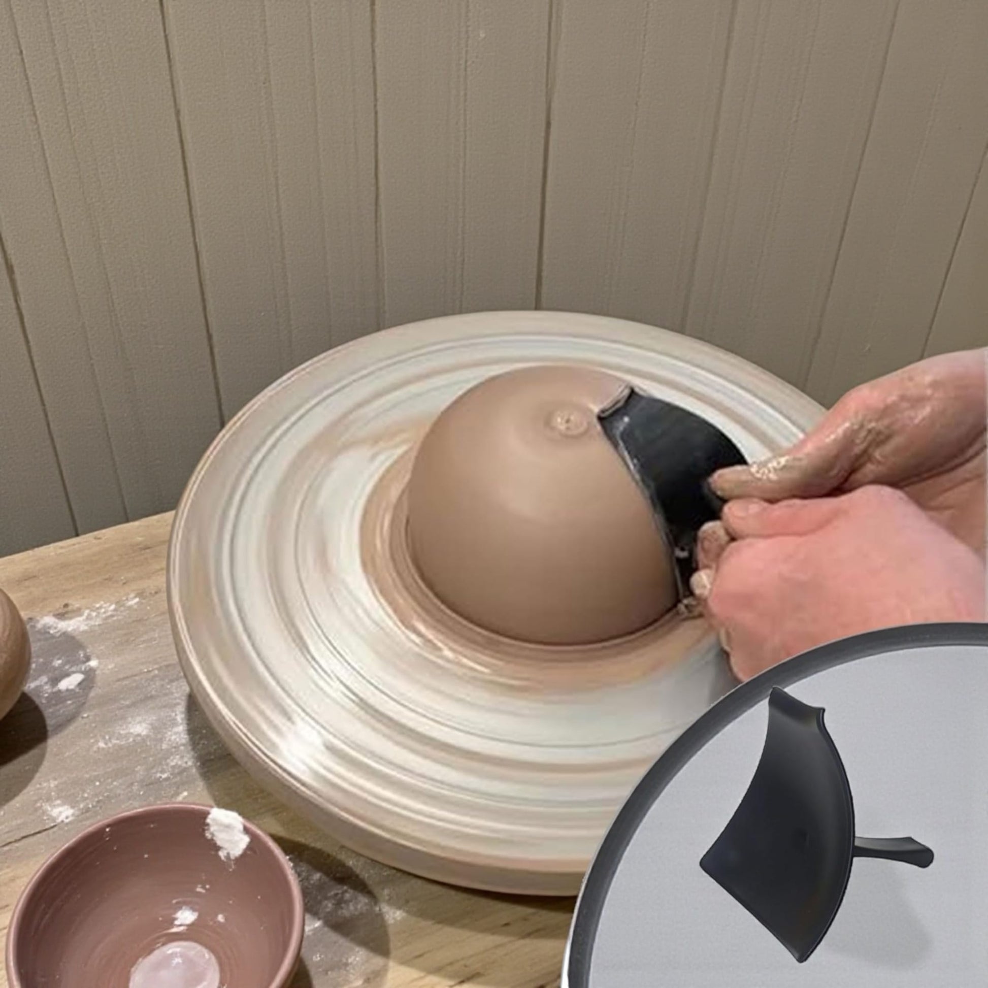 Kestävästä ABS-muovista valmistettu väline sopii sekä aloittelijoille että kokeneille keraamikoille, ja se toimii erityisen hyvin kulhojen, kupolimallisten muotojen ja muiden pyöreiden töiden ulkopuolisessa tuennassa.