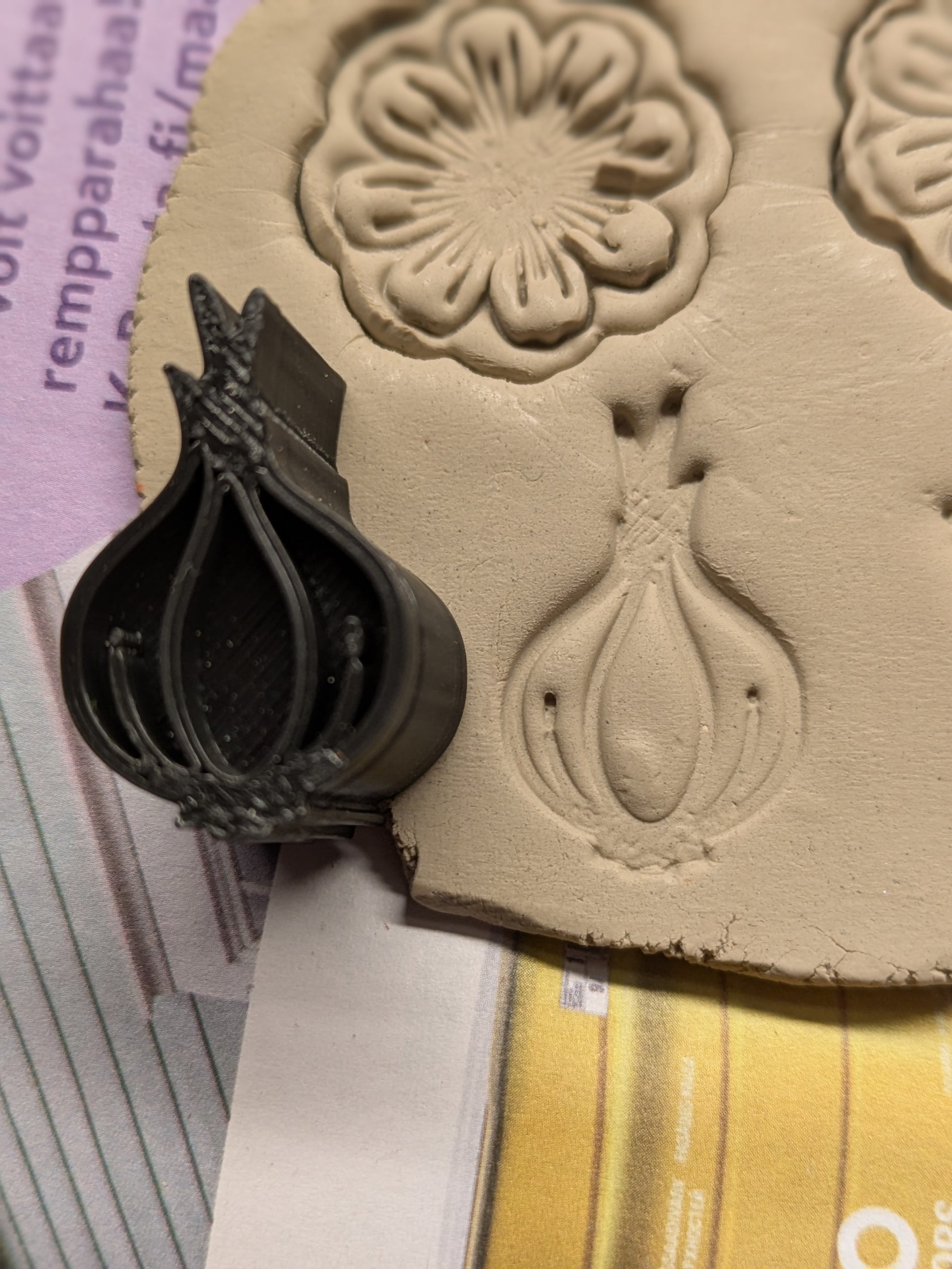 ✔ Käytä muovikelmua leimasimen ja saven välissä siistiä jälkeä varten