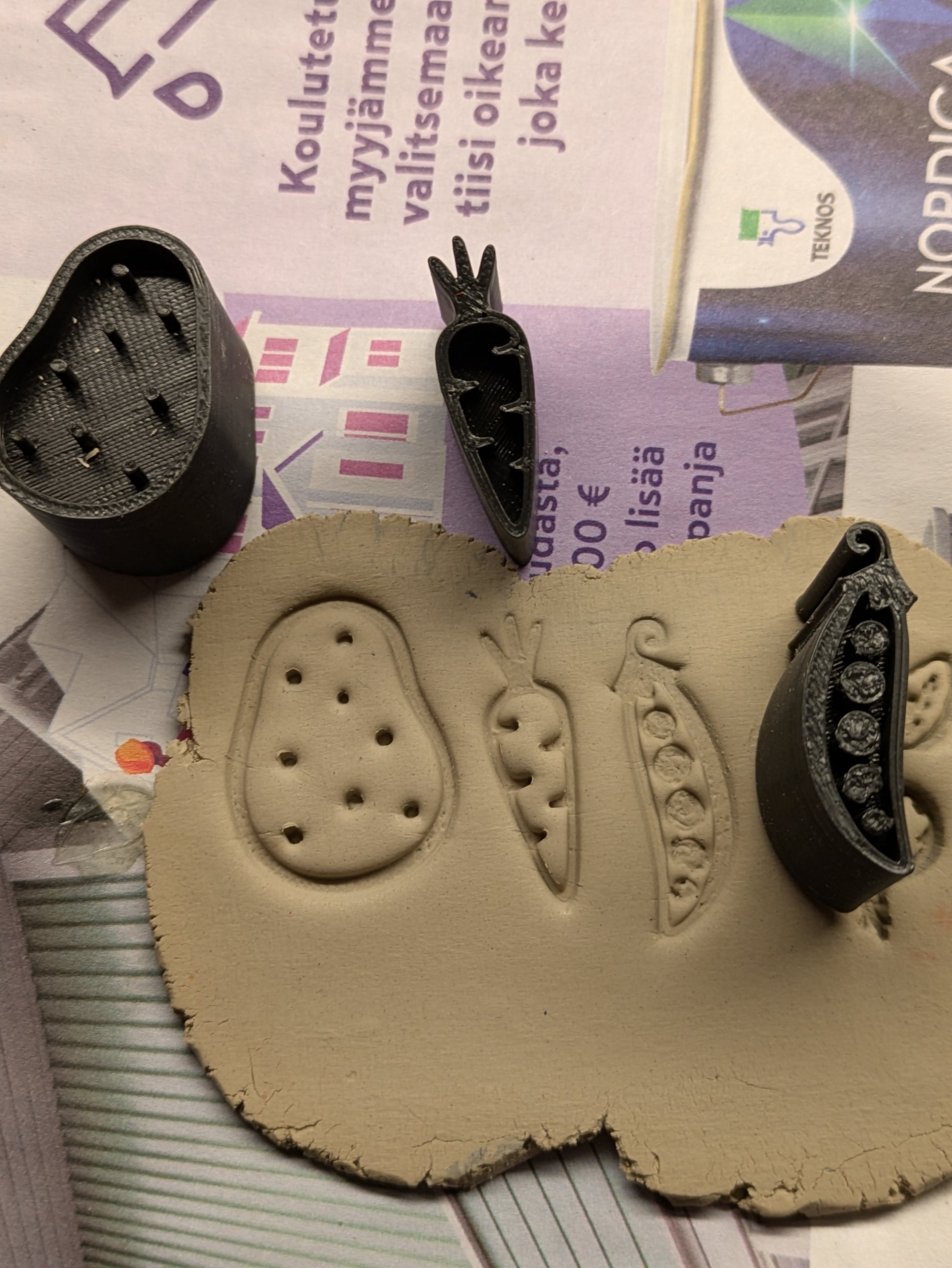 Vihannesaiheinen savileimasinsetti – puutarhan ja keramiikan koristeluun