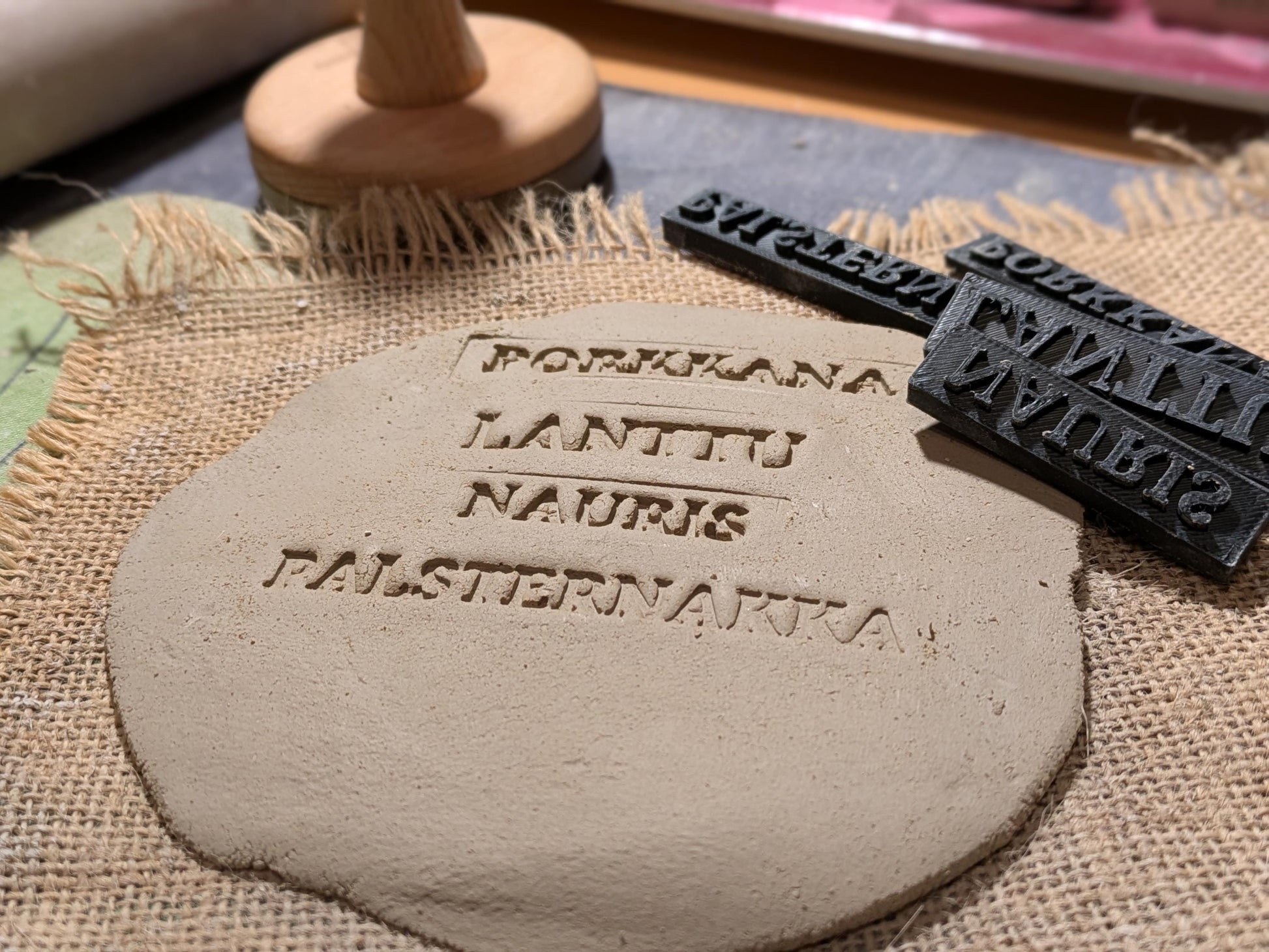 Ominaisuudet: Materiaali: Musta PLA, biohajoava ja ympäristöystävällinen muovi. Kestävä ja helppokäyttöinen: Suunniteltu tuottamaan selkeitä ja yhtenäisiä painatuksia savessa. Valmis muotoilu takaa tasaisen lopputuloksen joka kerta.