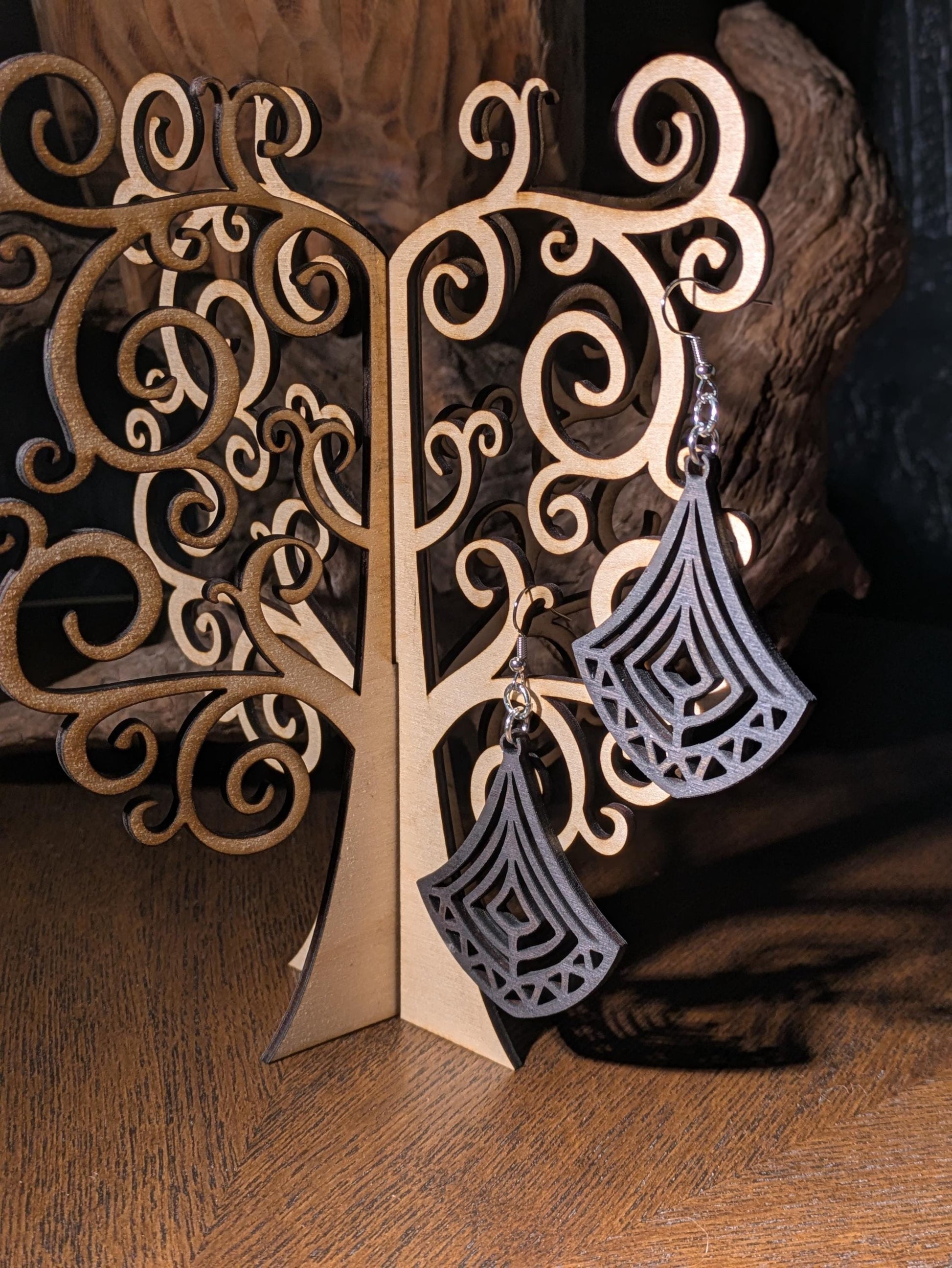 Koe luonnon ja ikivanhojen symbolien harmonia näissä laserleikatuissa puisissa korvakoruissa. Pohjoismaisesta mystiikasta ja orgaanisista muodoista inspiroituneet Runeveil-korvakorut yhdistävät modernin käsityön ja ajattoman eleganssin.