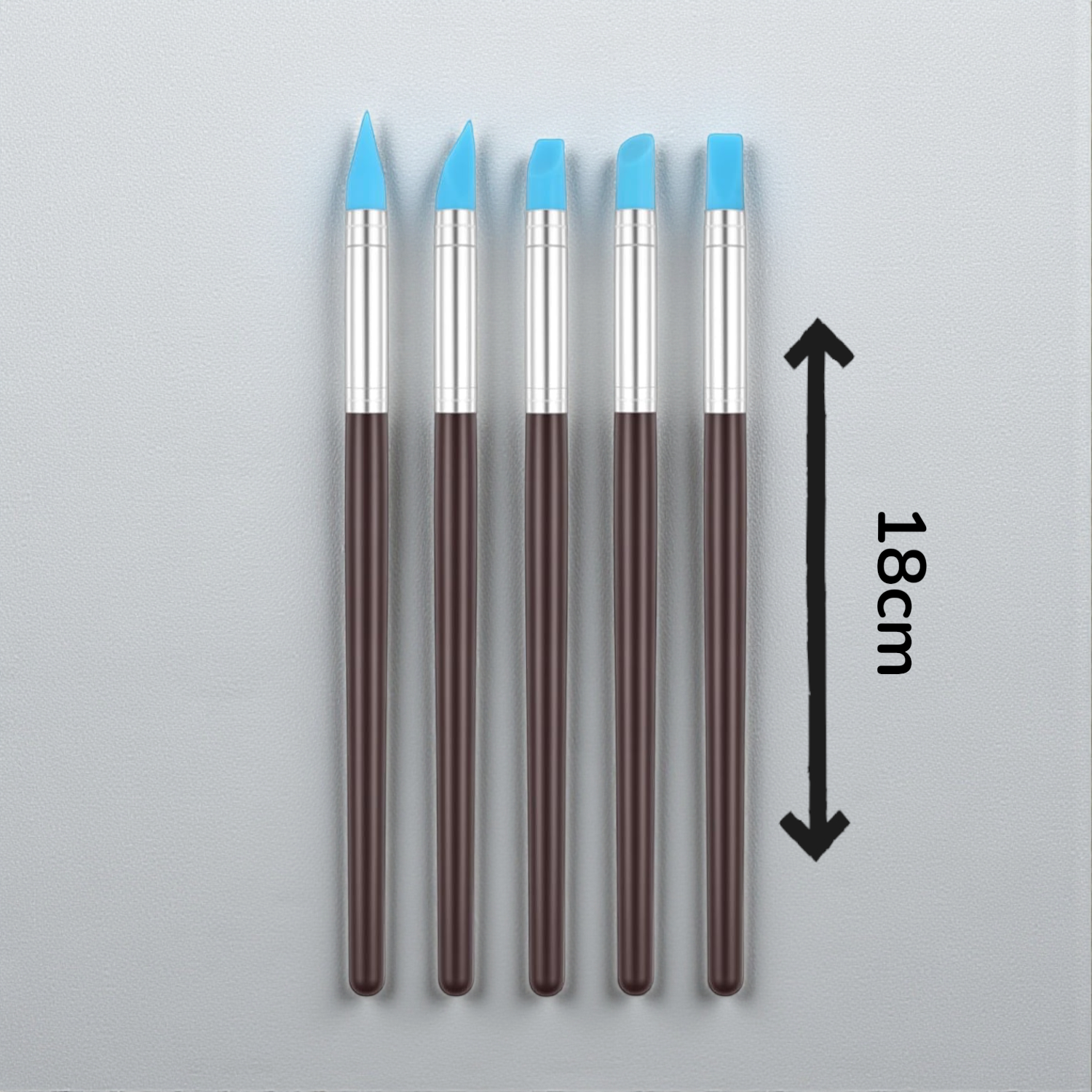 Monikäyttöinen silikonikärkinen muotoilukynäsetti saven, muottien ja muiden yksityiskohtaisten pintojen muotoiluun.