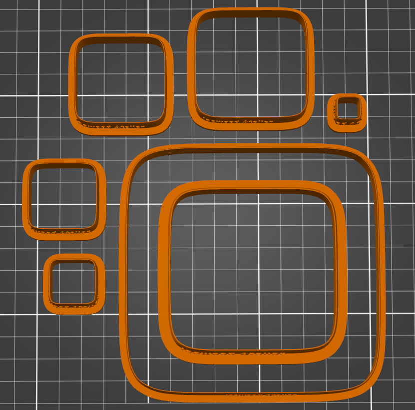 Tämä 3D-tulostettu leikkurisetti sisältää seitsemän erikokoista neliöleikkuria. Ne sopivat täydellisesti saven, askartelumassan ja muiden ei-ruokamateriaalien muotoiluun. Jokainen leikkuri on suunniteltu Icewood Atelierissa ja tulostettu tarkkuudella laadukkaasta PLA-muovista. Myydään settinä, ei erikseen.