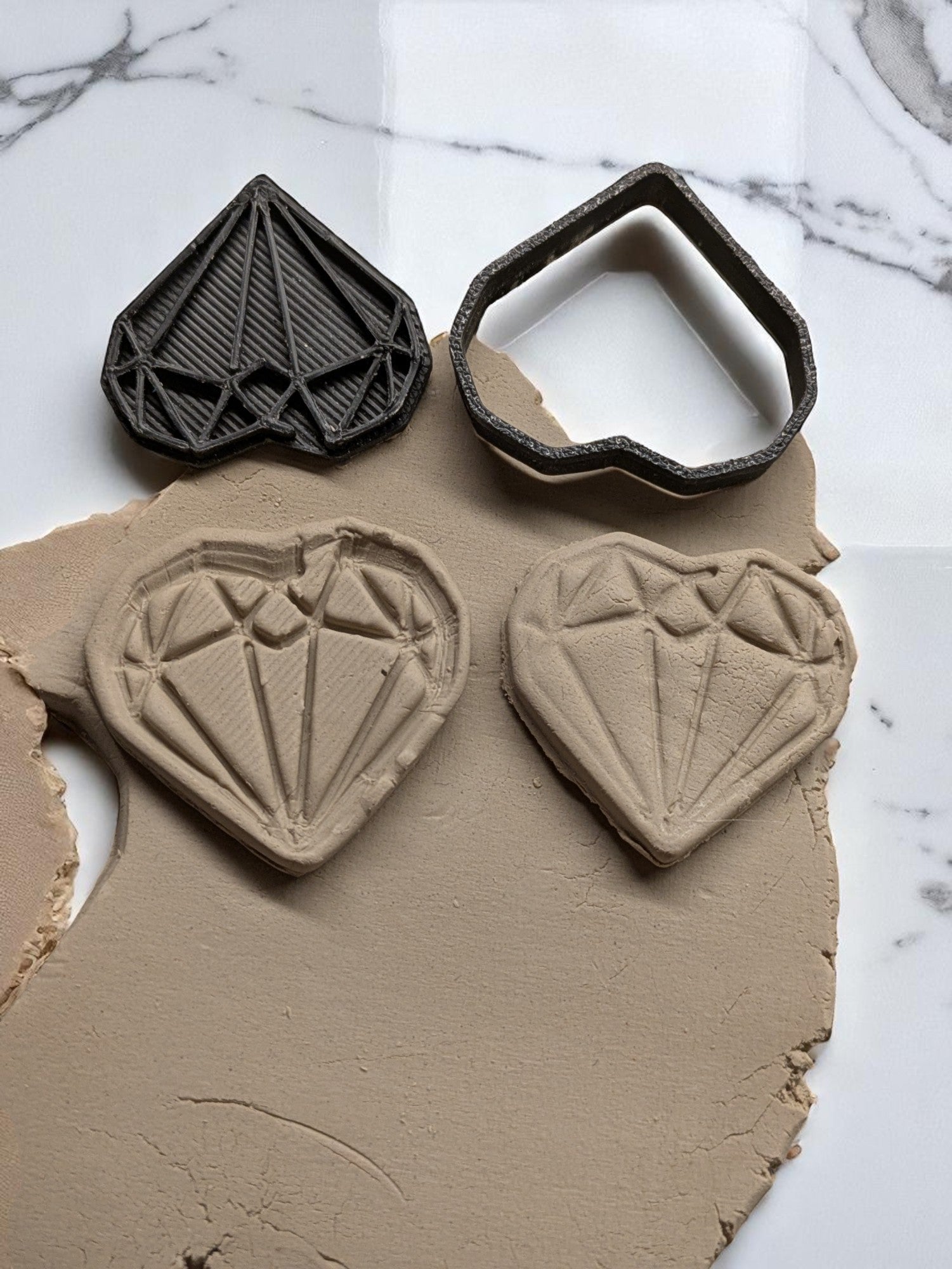 💡 Käyttöohje: Suositellaan käyttämään stamp cutteria ja muovikelmua yhtä aikaa: näin saat siistin ja tarkan kuvion ilman tarttumista. Paina napakasti kaulimella (tarvittaessa useampi isku), jotta kuvio tulee kauniisti esiin! Anna timanttisydämen inspiroida luovuuttasi ja tuo ripaus ylellisyyttä käsitöihisi! ✨💎💖