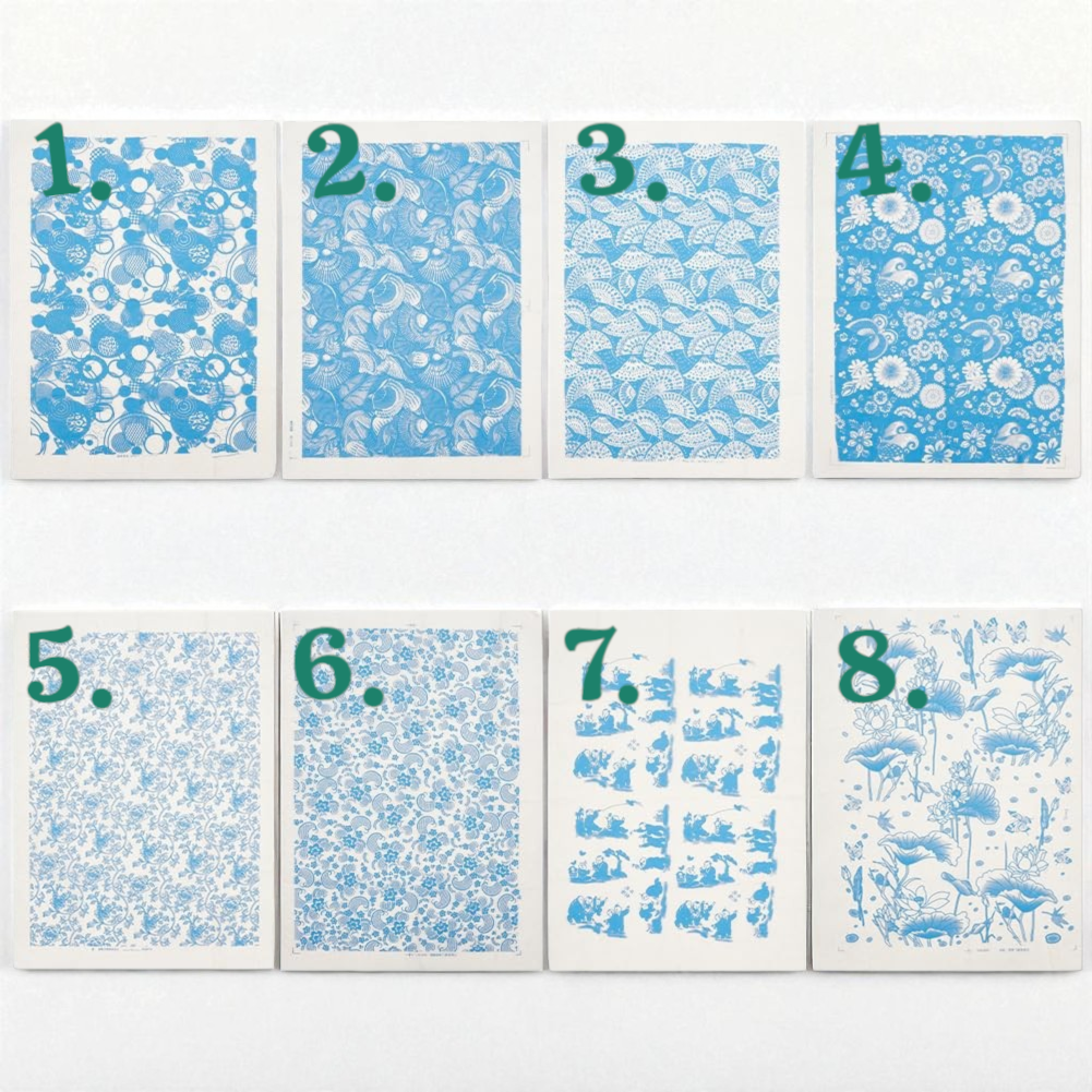 Anna keramiikkatöillesi elegantti ja perinteinen ilme tällä sinikuvioisella aluslasite-siirtopaperilla!