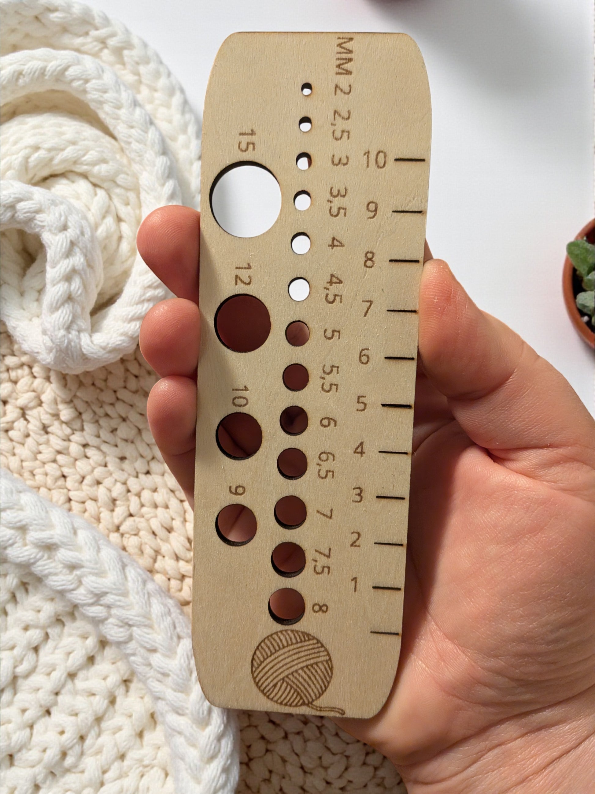 Puinen käsityöviivain neulontaan ja virkkaukseen